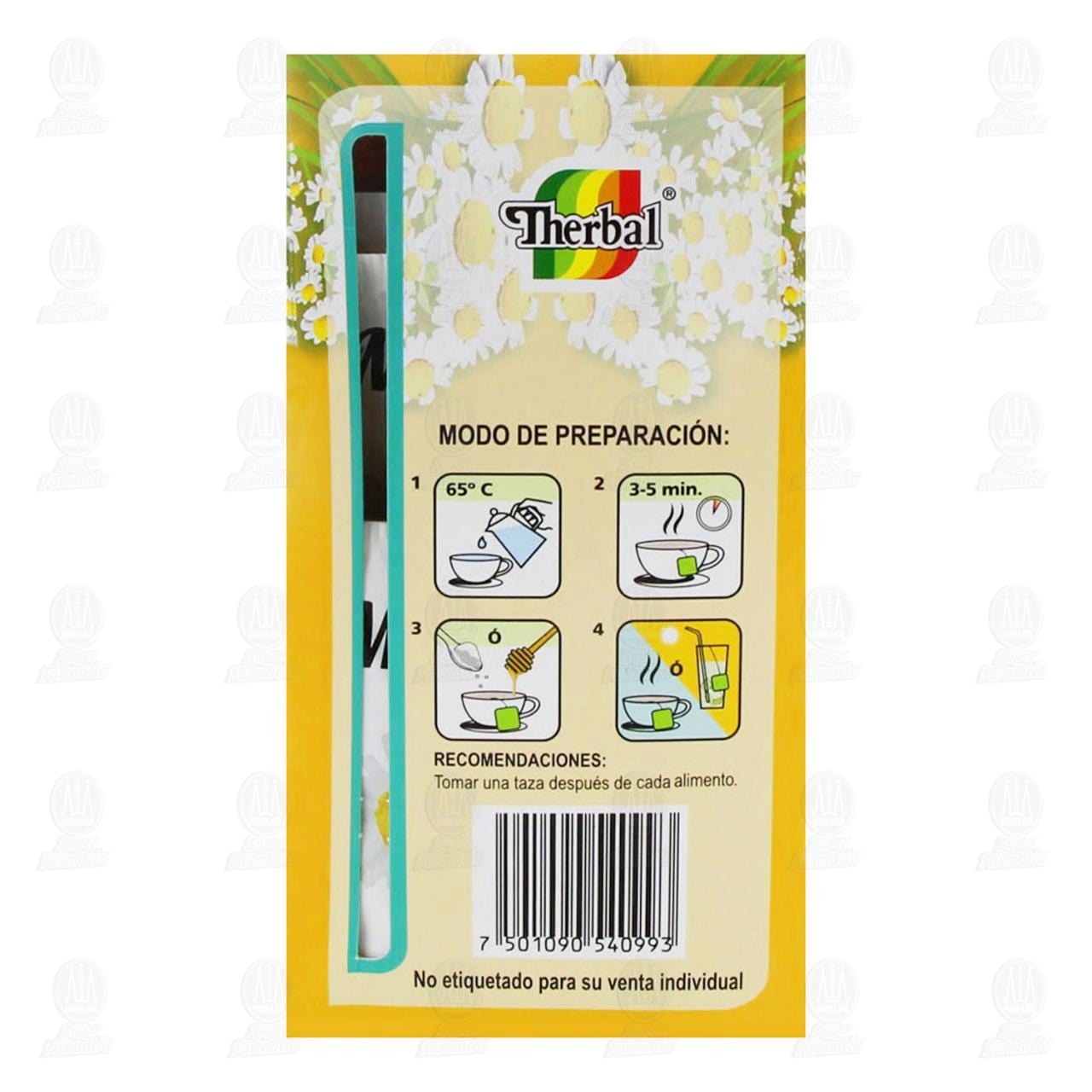 Té Therbal de hierbas para infusión sabor a manzanilla, matricaria recutita L. Caja de 40 gramos con 40 sobres de 1 gramo cada uno.