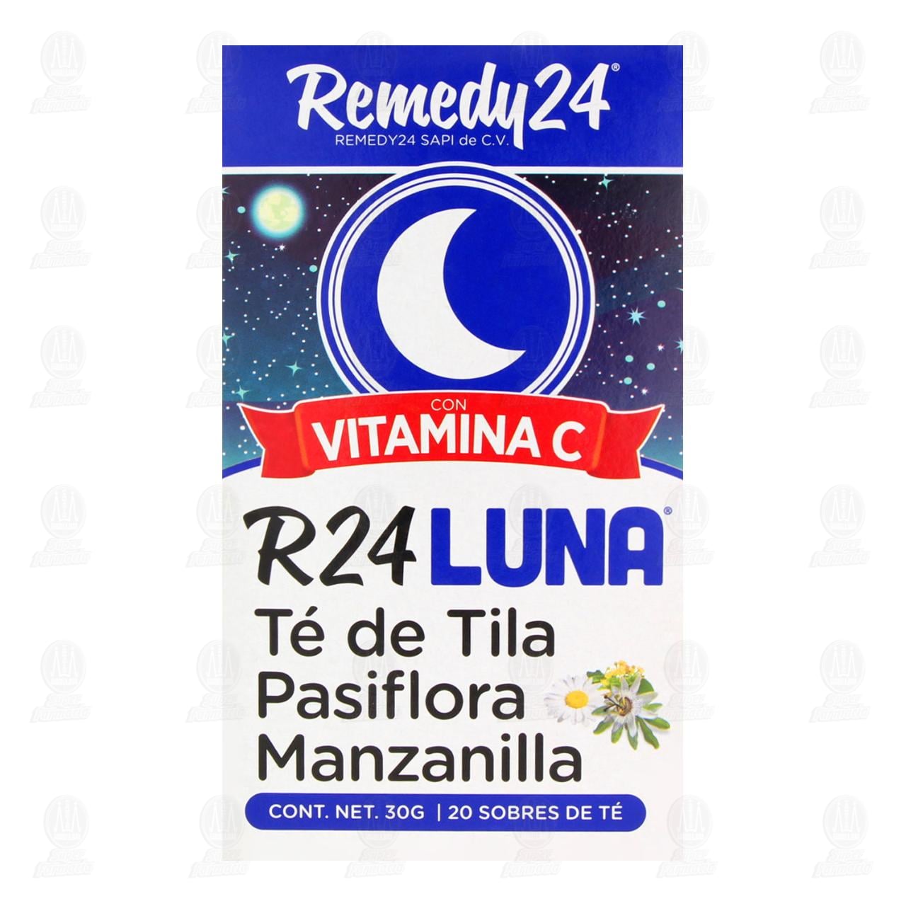 Té Remedy24 Luna, mezcla de tila, pasiflora y manzanilla con vitamina C. Caja de 30 gramos con 20 sobres.