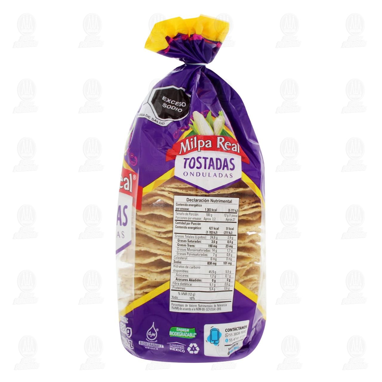 Tostadas de maíz Milpa Real Onduladas. Bolsa con 324 gramos.
