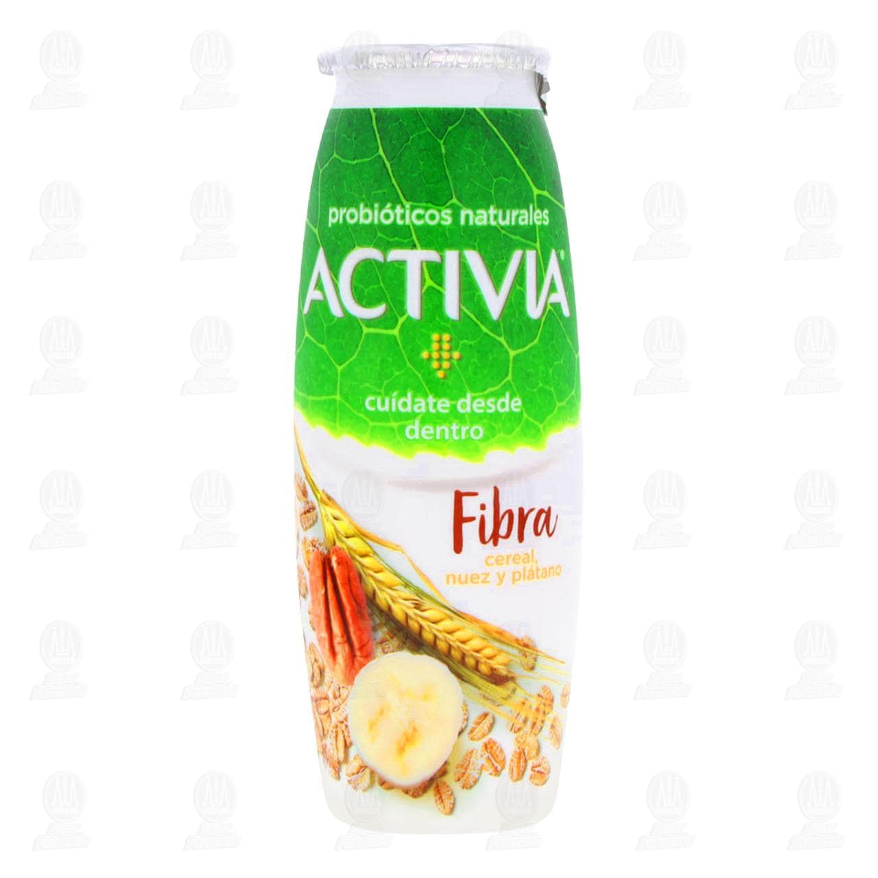Yoghurt Danone Activia Fibra con probióticos naturales, alimento lácteo fermentado con plátano, cereal y nuez. Envase con 225 gramos.