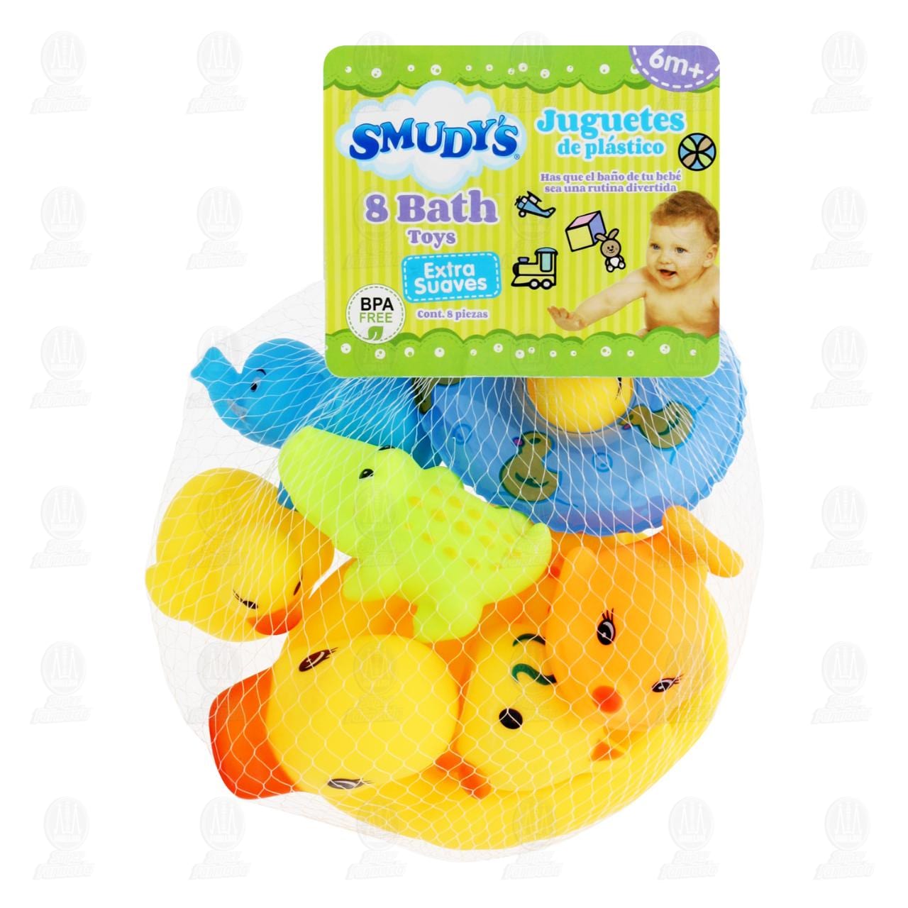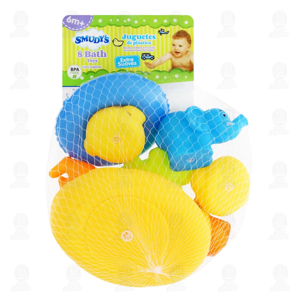 Juguetes de Plástico para baño Smudy's para Bebés de 6 meses en adelante Extra Suaves, Varios diseños. Contiene 8 piezas.