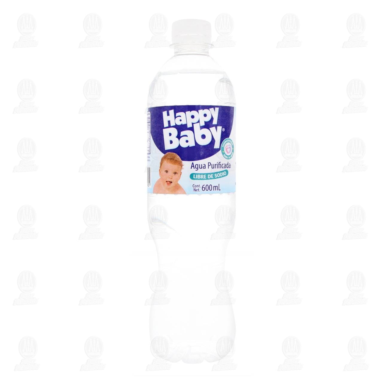 Agua purificada Happy Baby, libre de sodio, hidratación para tu bebé. Botella con 600 mililitros.