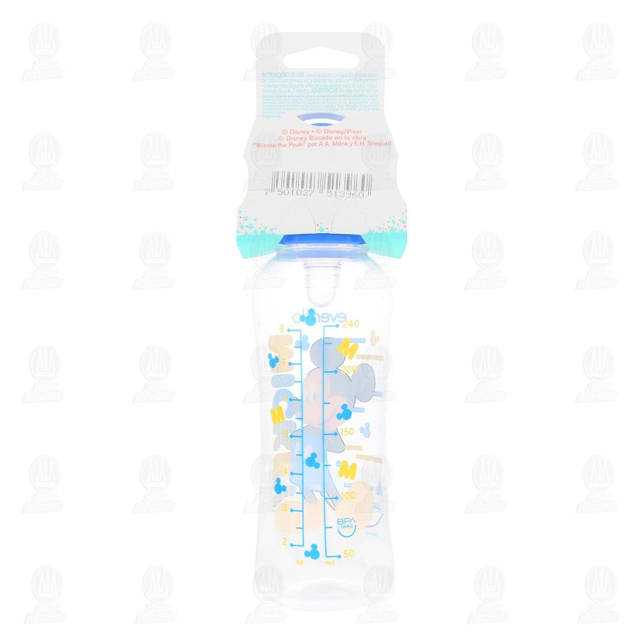 Biberón Evenflo Disney Baby Mickey de flujo medio para bebés de 0 a 12 meses, capacidad de 240 mililitros, mamila con válvula anticólicos. Contiene 1 pieza.