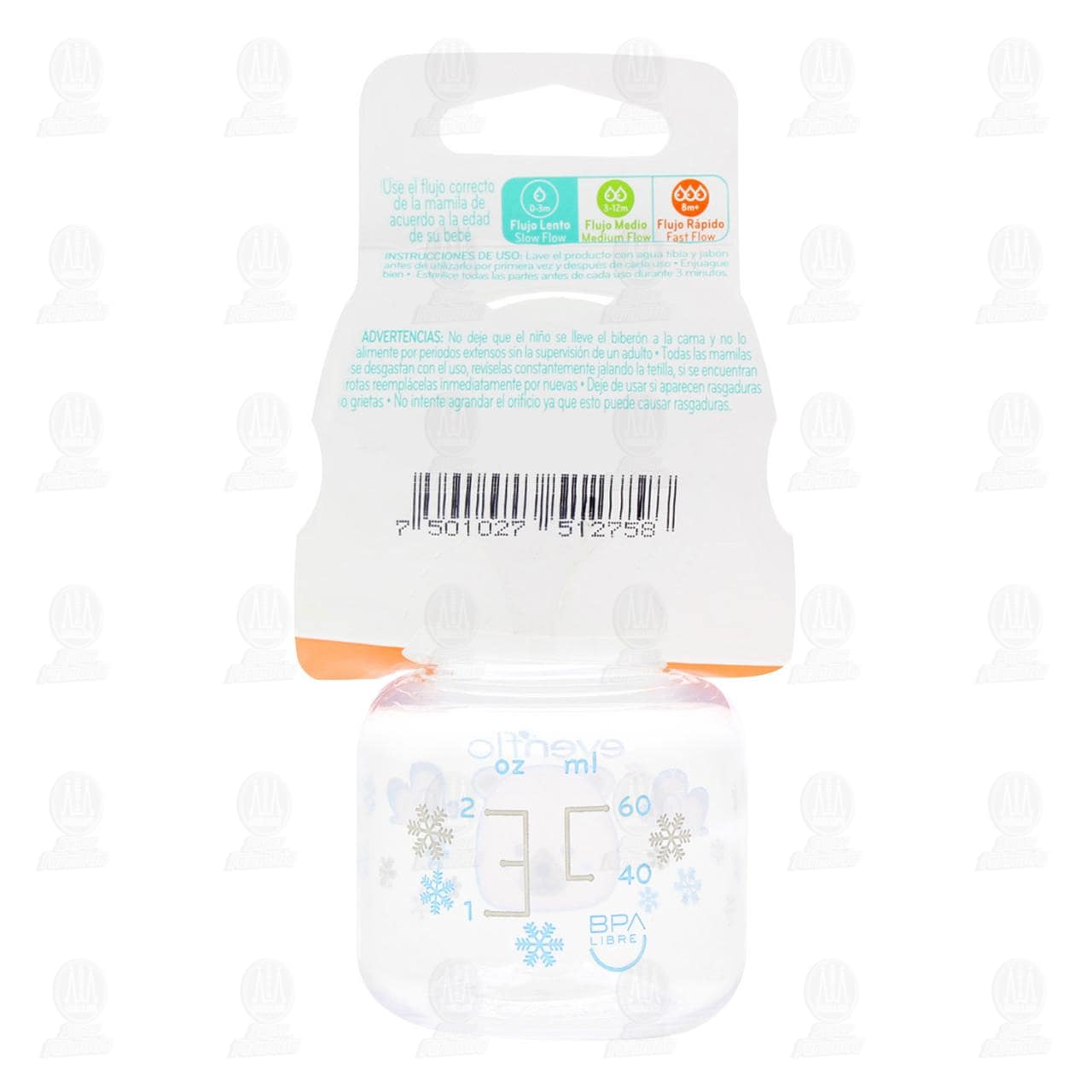 No deje que el niño se lleve el biberón a la cama y no lo alimente por periodos extensos sin la supervisión de un adulto. Todas las mamilas se desgastan con el uso, revíselas constantemente jalando la tetilla, si se encuentran rotas reemplácelas inmediatamente por nuevas. Deje de usar si aparecen rasgaduras o grietas. No intente agrandar el orificio ya que esto puede causar rasgaduras.Detalles del producto