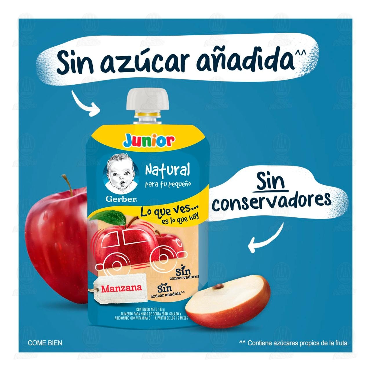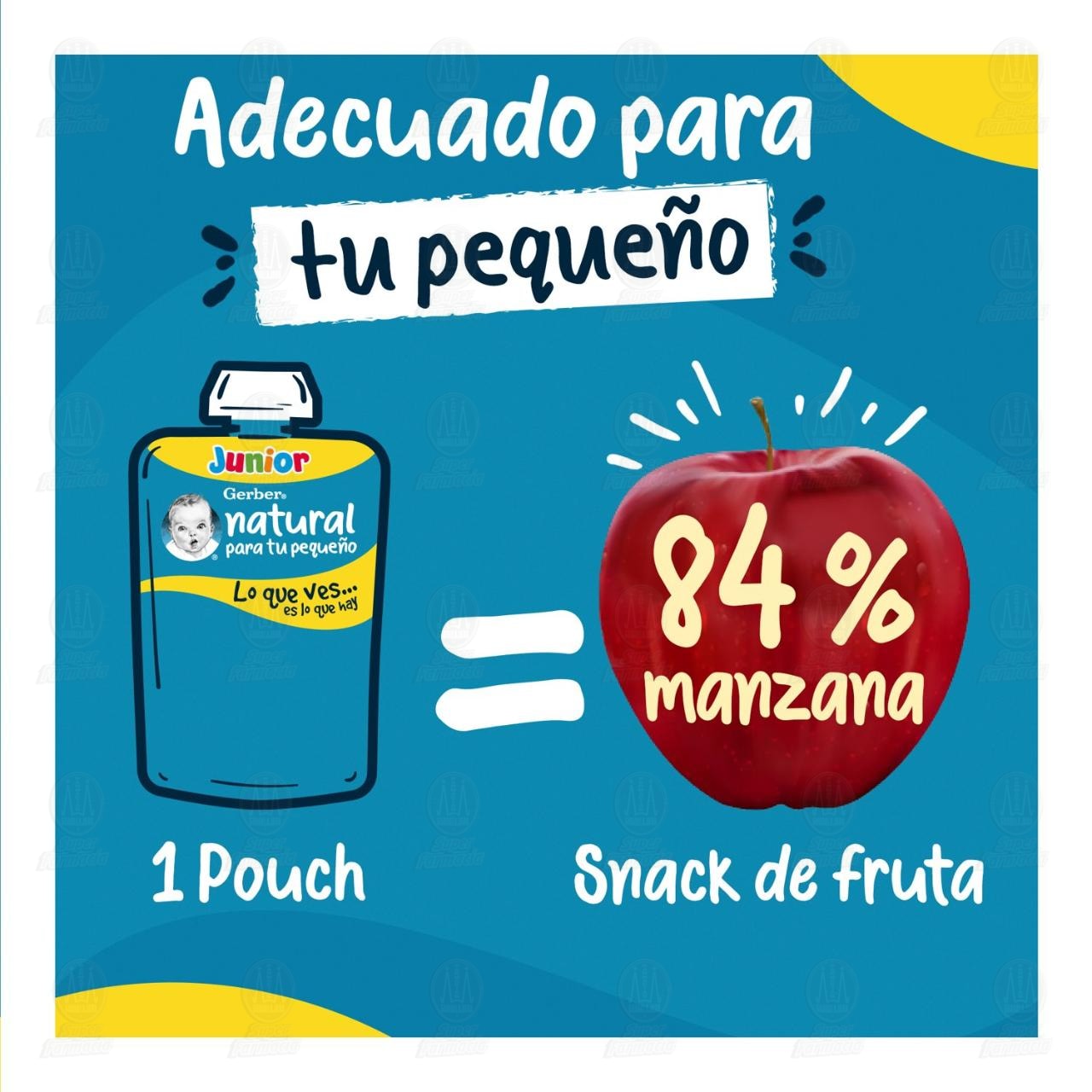 Papilla Gerber Junior Manzana Pouch, alimento para bebé de 1 año en adelante. Snack saludable para tu bebé en cualquier momento del día. Empaque con 120 gramos.