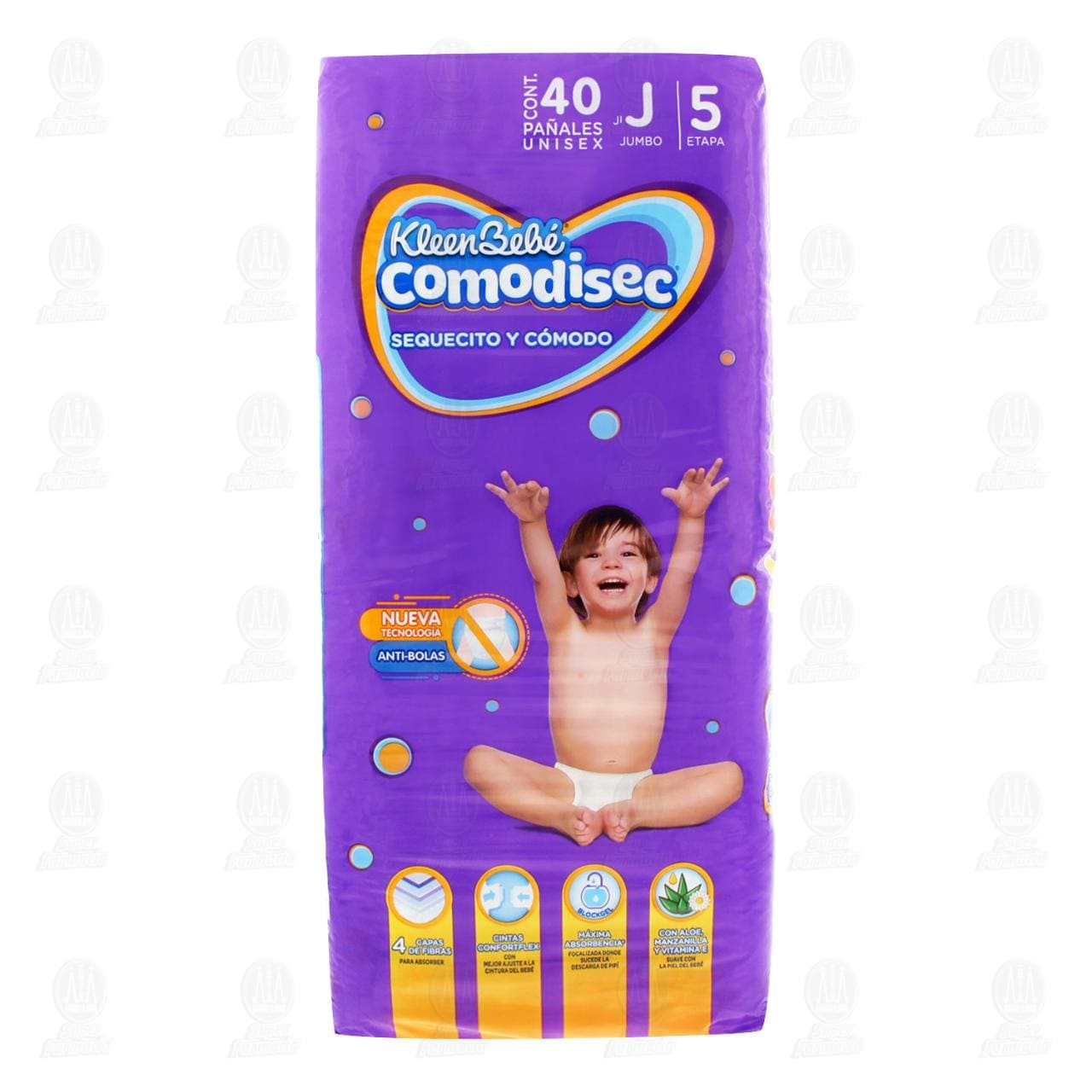 Pañales desechables KleenBebé Comodisec para bebé etapa 5 J (jumbo)(11 a 14.5 kilogramos), con aloe, manzanilla y vitamina E para la piel del bebé y cintas Confortflex de mejor ajuste a la cintura. Paquete con 40 piezas.