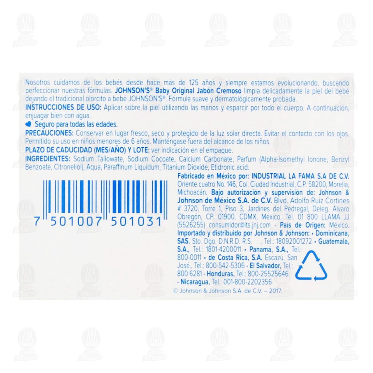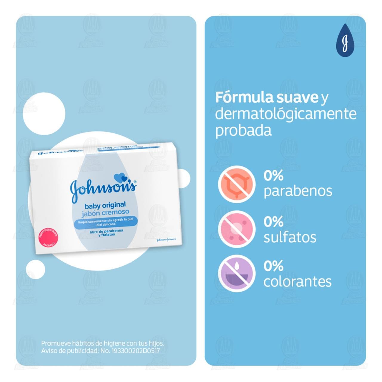 El jabón cremoso Johnson´s Original limpia suavemente sin agredir la piel delicada del bebé.