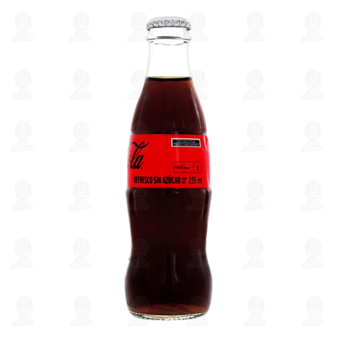 Refresco Coca-Cola Zero sin azúcar, ideal para acompañar tus comidas o refrescarte en cualquier momento del día. Botella de vidrio con 235 mililitros.
