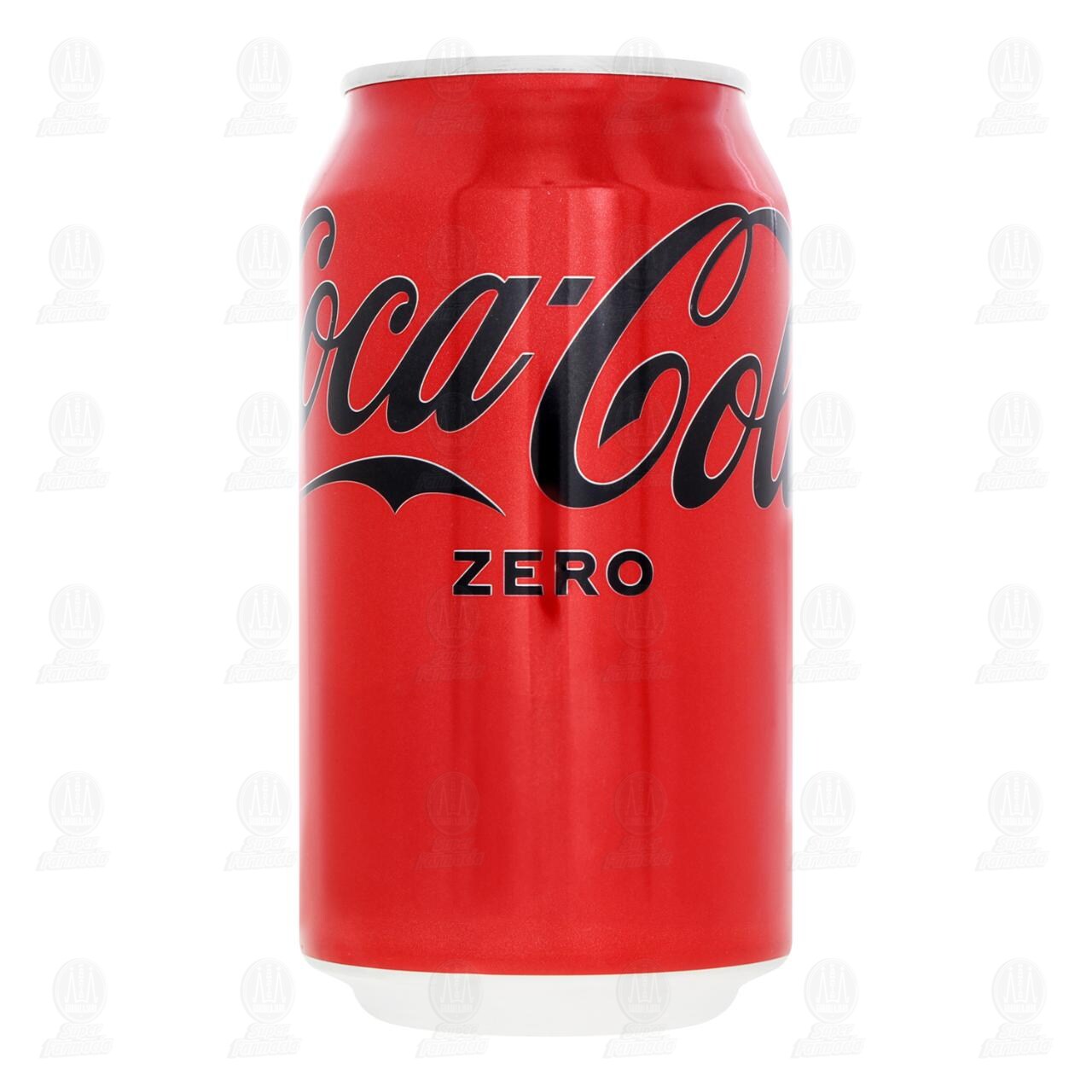 Refresco Coca-Cola Zero sin azúcar, ideal para disfrutar frío y acompañar tus comidas. Lata con 355 mililitros.