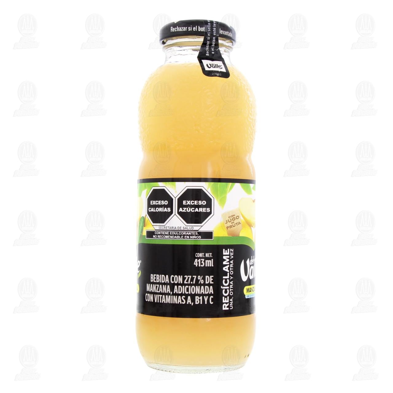 Bebida del Valle con 27.7% de Manzana, Adicionada con Vitaminas A, B1 y C. Botella con 413 mililitros.