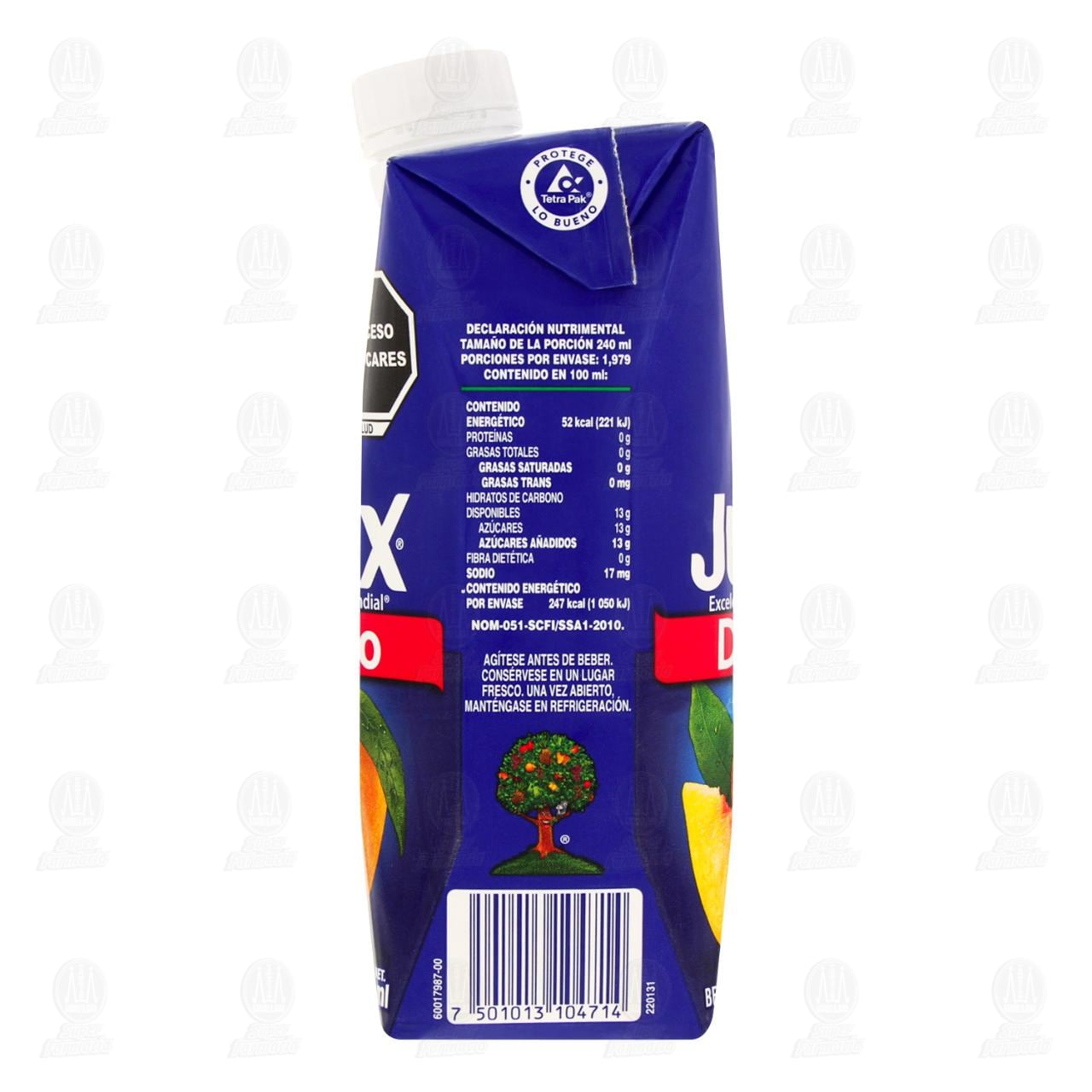 Bebida Jumex con néctar mixto de durazno, hecha con fruta. Envase con 475 mililitros.