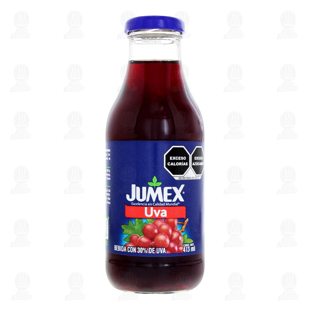 Bebida Jumex con 30% de Uva. Botella con 413 mililitros.