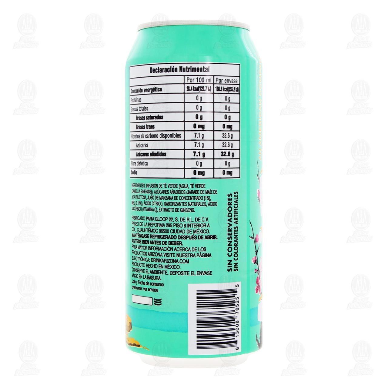 Bebida Arizona Té Verde Sabor Té verde con 1% de Jugo de Manzana. Lata 460 mililitros.