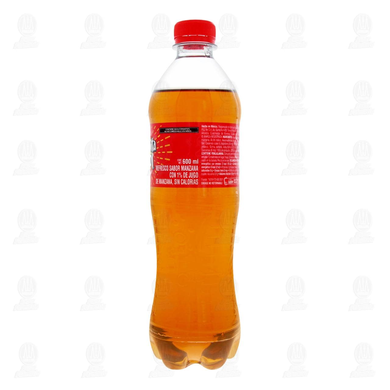 Refresco Manzanita Sol con 1% de Jugo de Manzana, Sin Calorias. Contiene 600 mililitros.
