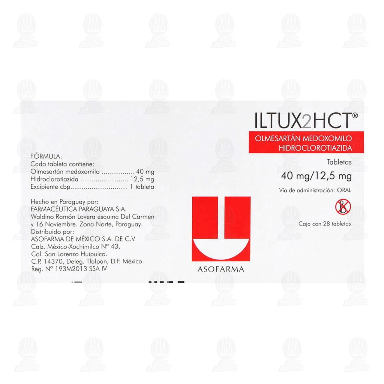 ILTUX2HCT® caja con 7, 14 o 28 tabletas de 20 mg/12.50 mg o 40 mg/12.50 mg.