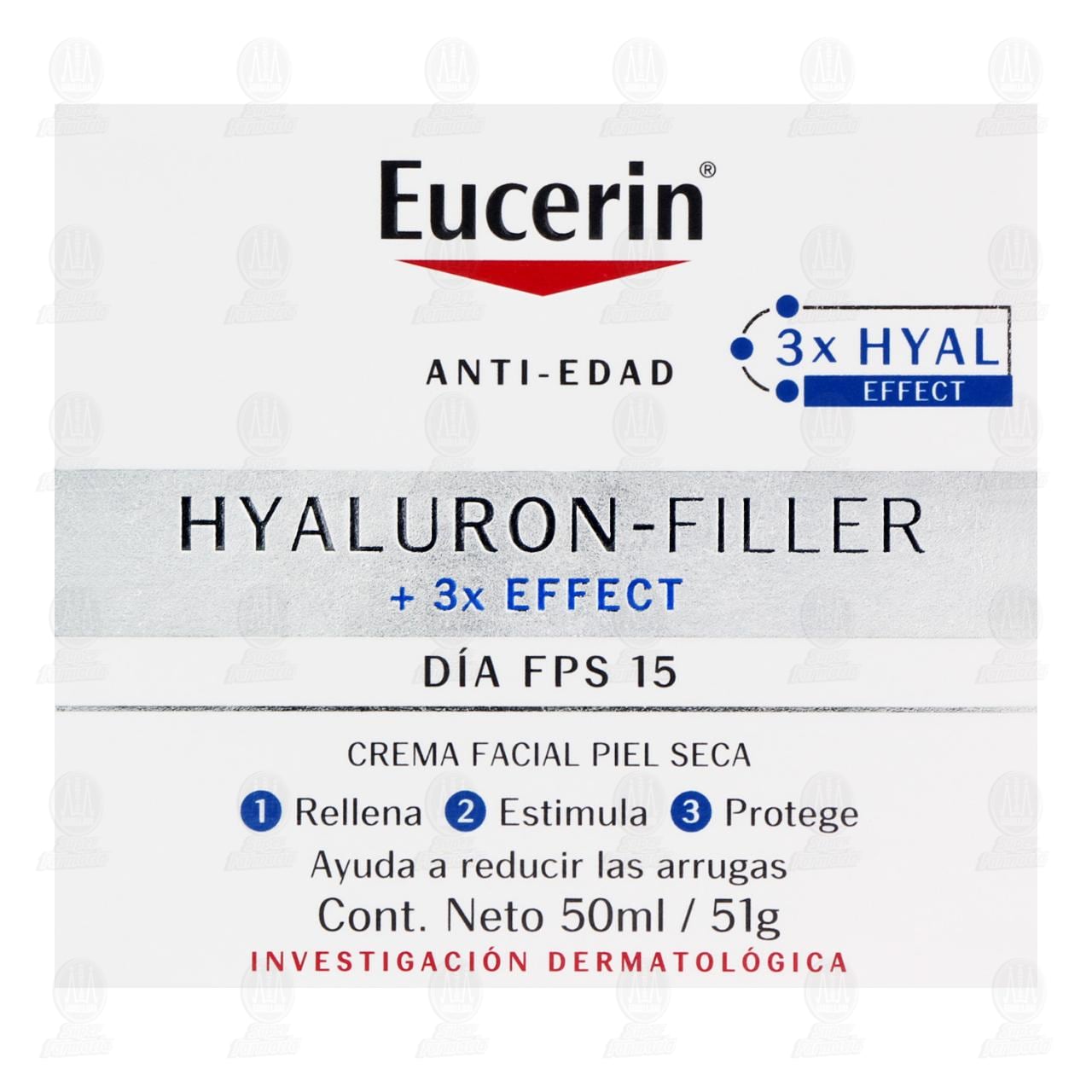 Eucerin Crema Facial de Día FPS 15 Hyaluron Filler +3x Effect Piel Seca, 50 ml.
