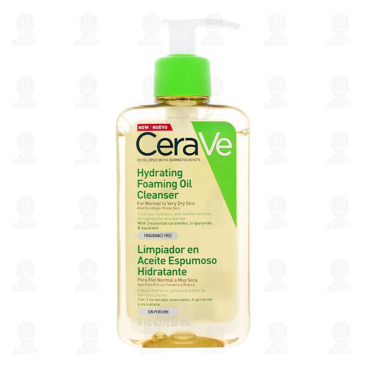 CeraVe Limpiador en Aceite Espumoso Hidratante para Piel Normal a Muy Seca. Limpia, hidrata y calma sin alterar la barrera cutánea, Sin perfume. Envase con 236 mililitros.
