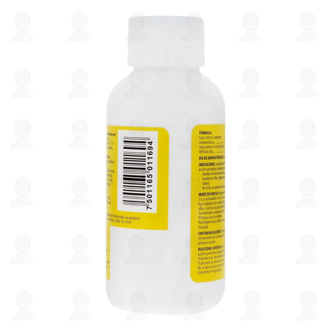 Vía de administración: Bucofaríngea. Indicaciones: Isodine bucofaríngeo brinda una acción antiséptica inmediata como: auxiliar en infecciones de garganta y boca. Auxiliar en aftas, higiene bucal y mal aliento por alcohol y tabaco. No irrita, no quema y no mancha. Modo de empleo: Para desinfectar garganta y boca, diluir 1 ó 2 cucharaditas en ¼ o ½ de vaso con agua fría o caliente y hacer gárgaras dos veces al día hasta sentir alivio. Auxiliar en aftas o úlcera bucales, humedezca un hisopo con isodine bucofaríngeo y aplique en el área afectada hasta que desaparezcan las molestias. Para higiene bucal, diluir ½ cucharadita en un vaso con agua y enjuagar.Detalles del producto