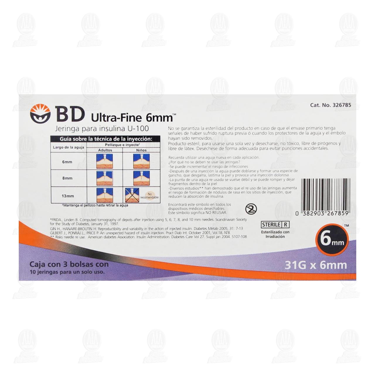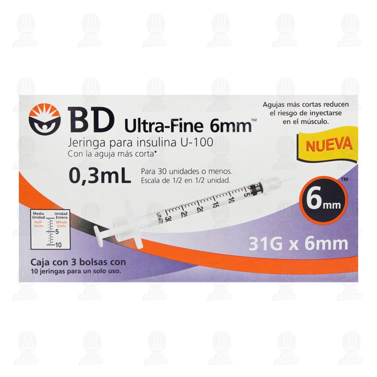 Jeringas para Insulina Ultra-Fine 0.3ml 31G x 6mm, 30 pzas.