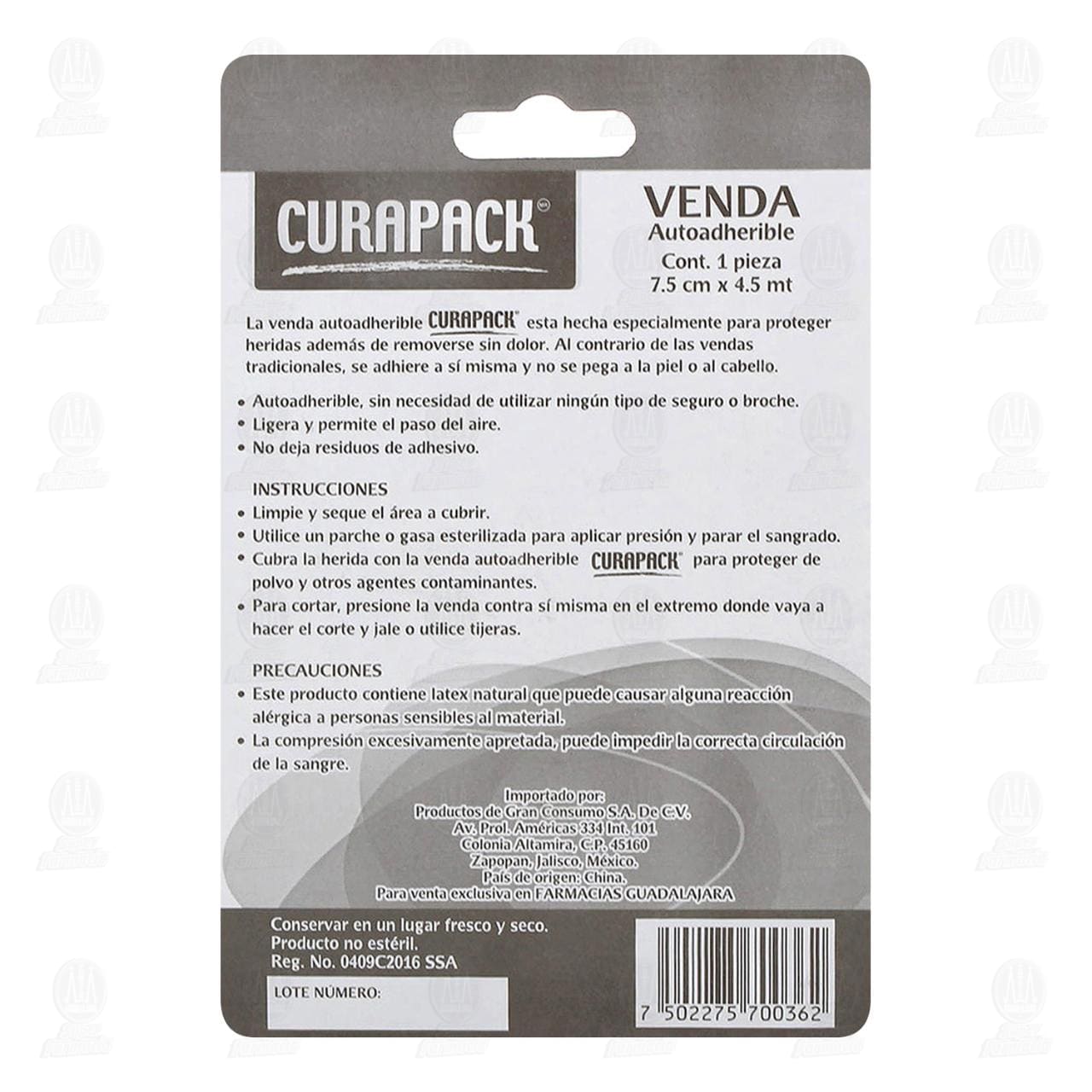 Limpie y seque el área a cubrir. Utilice un parche o gasa esterilizada para aplicar presión y parar el sangrado. Cubra la herida con la venda autoadherible curapack para proteger de polvo y otros agentes contaminantes. Para cortar, presione la venda contra sí misma en el extremo donde vaya a hacer el corte y jale o utilice tijeras.Detalles del producto