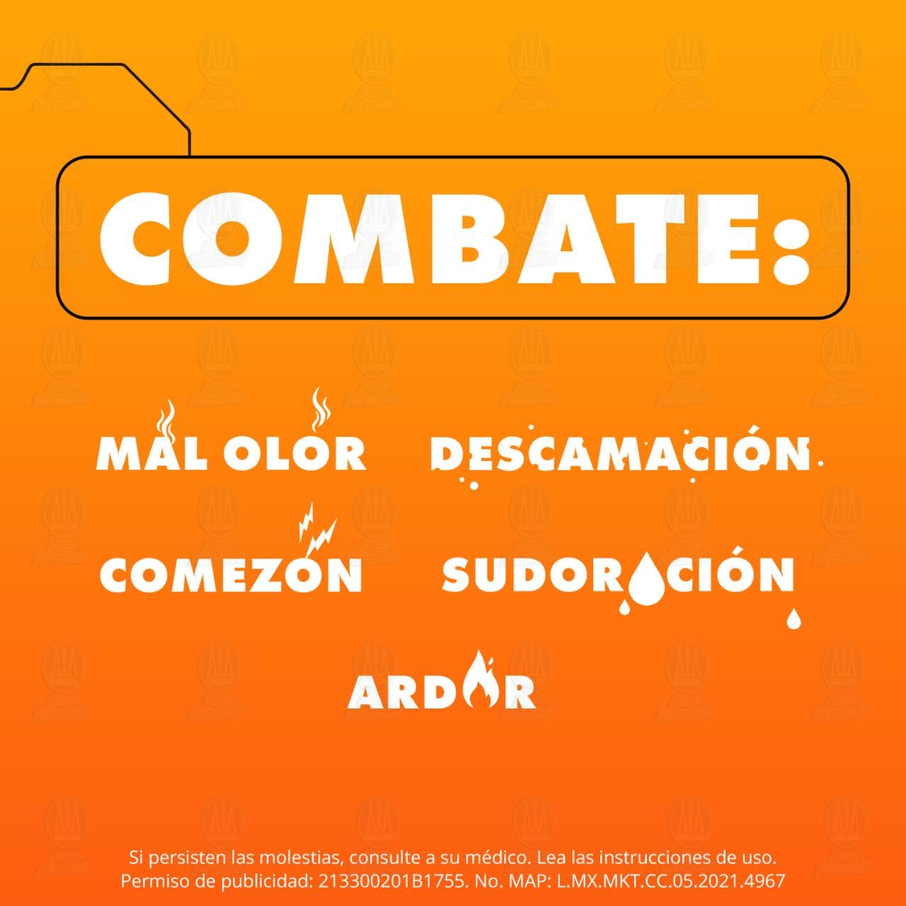 - Elimina diferentes tipos de hongos que causan el pie de atleta y afectan las manos, el tórax, las axilas, la ingle y la región perianal.
