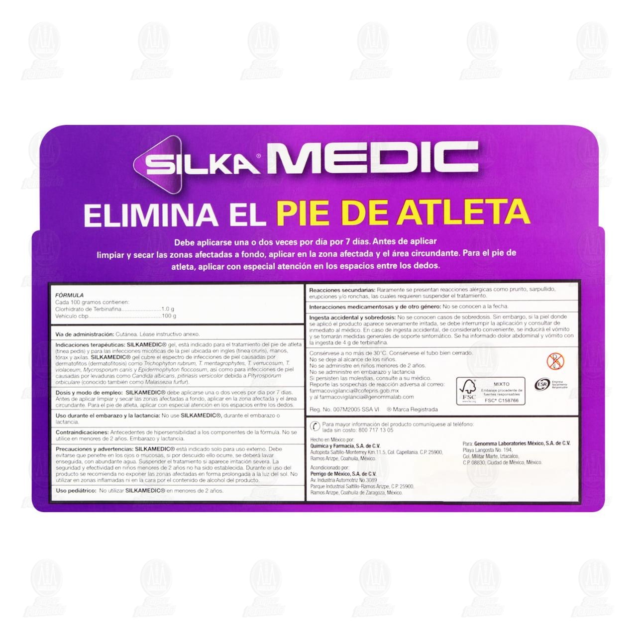 INDICACIONES TERAPÉUTICAS: SILKAMEDIC® Gel está indicado para el tratamiento del pie de atleta (Tinea pedis) y para las infecciones micóticas de la piel ubicadas en ingles (Tinea cruris), manos, tórax y axilas.