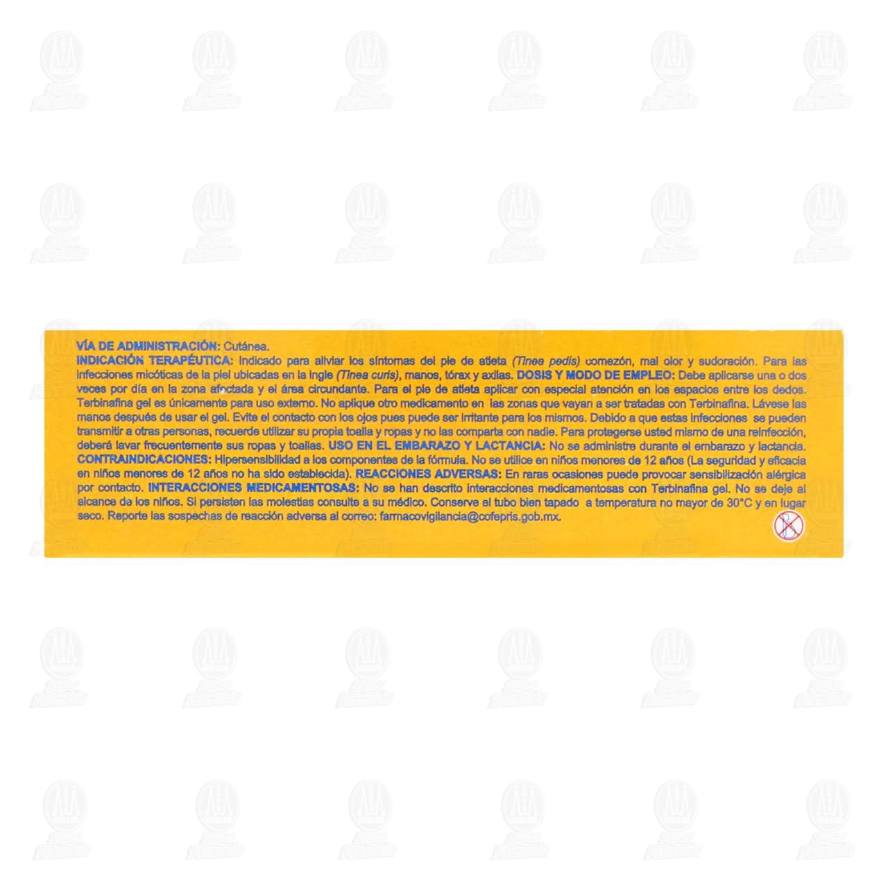 Aplicar 1 o 2 veces al día una capa fina de terbinafina crema. La duración de los tratamientos depende del padecimiento pie de atleta 1 semana, pitiriasis versicolor 2 semanas.Detalles del producto