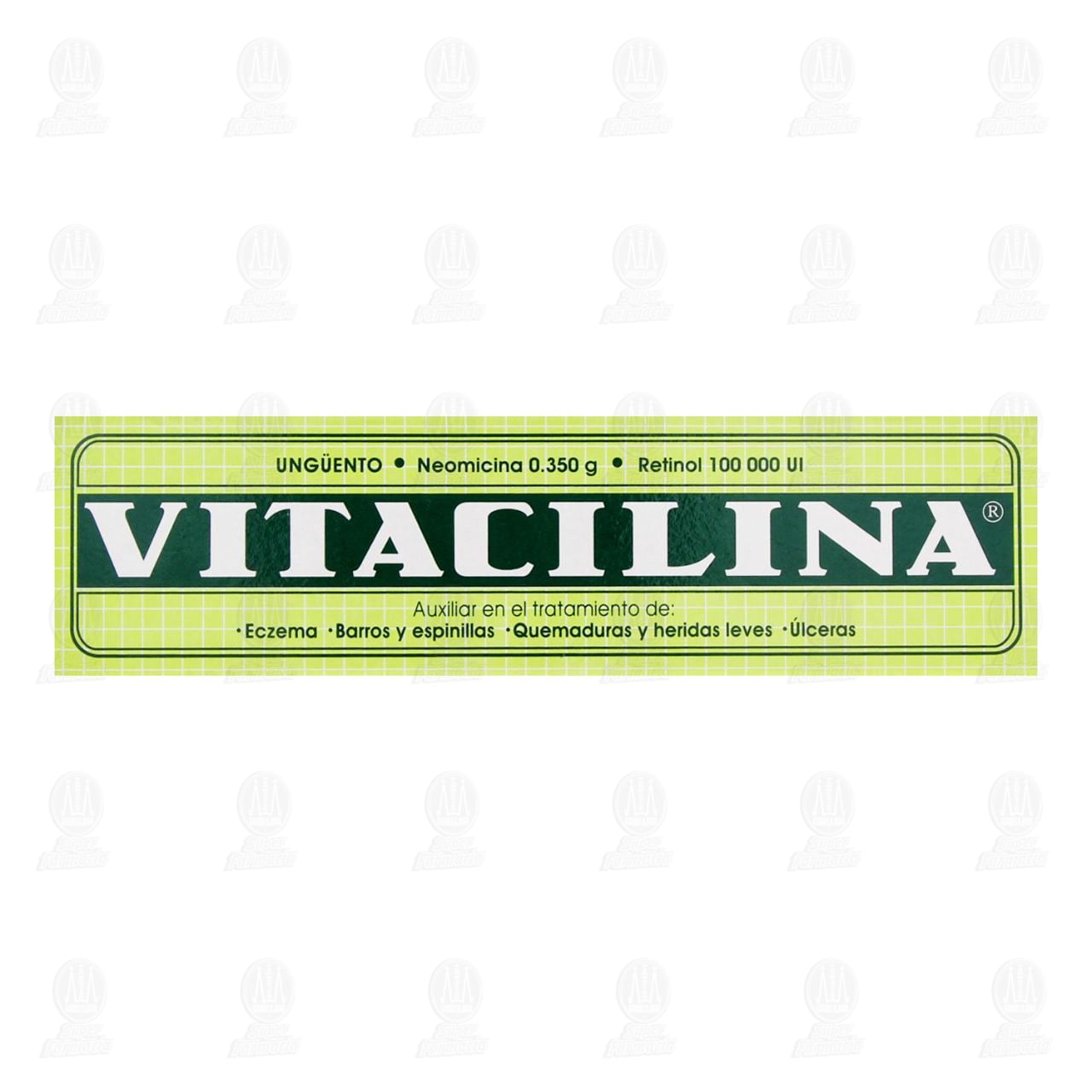 Vitacilina Ungüento Auxiliar en el Tratamiento de Afecciones de la Piel Tales Como Raspones, Quemaduras, Heridas Superficiales, Barros, Espinillas y Cortaduras. ¡Ah Que Buena Medicina! Tubo con 28 gramos (Neomicina, Retinol)