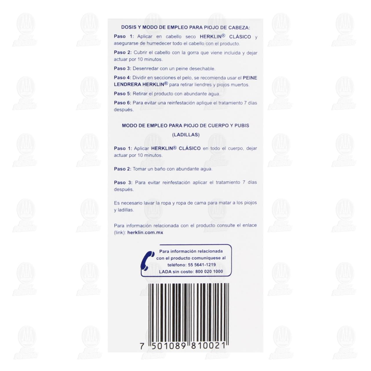 INDICACIONES TERAPÉUTICAS: HERKLIN® CLÁSICO Es para matar y eliminar piojos y liendres de la cabeza, vello corporal y vello púbico.