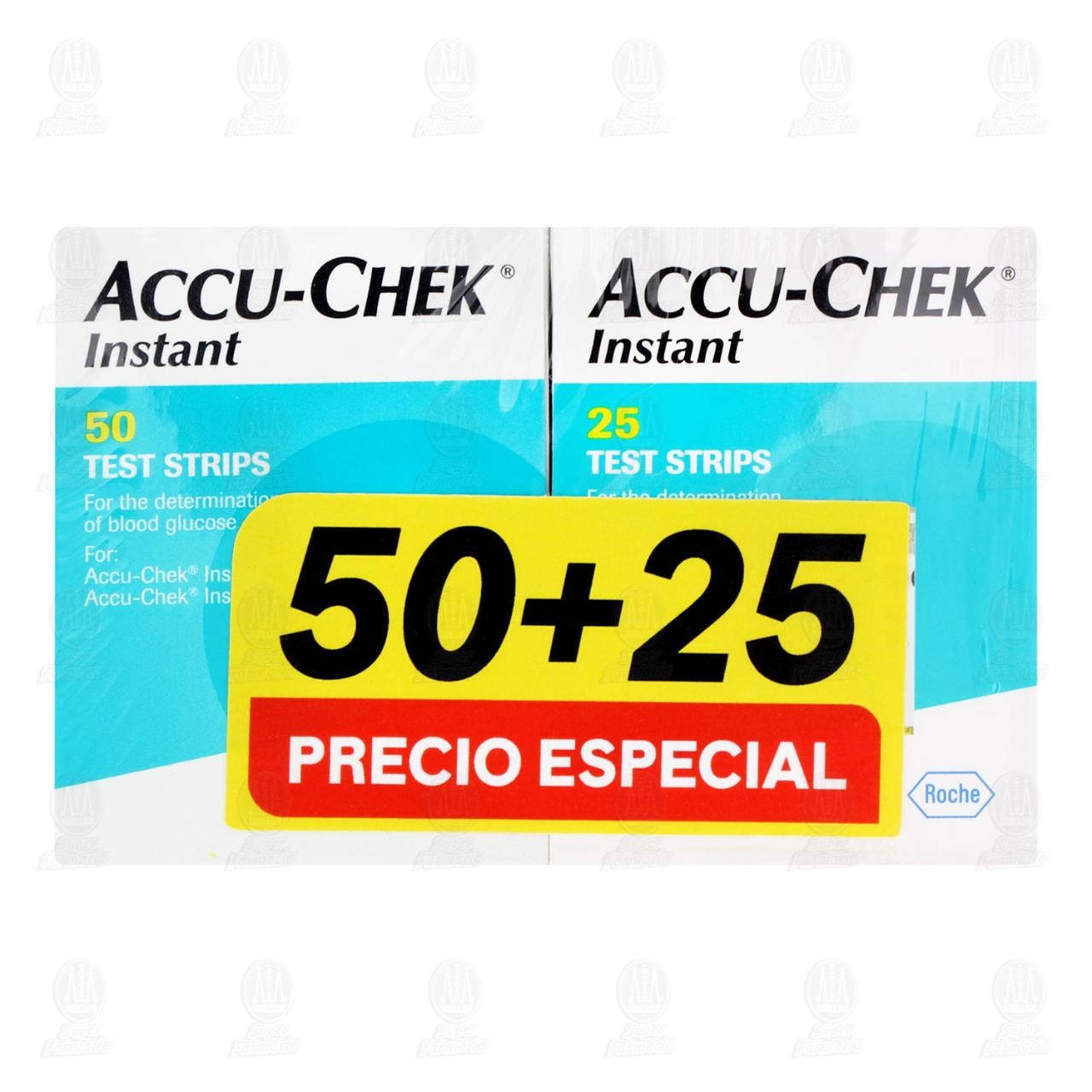Pack Accu-Chek Instant Tiras Reactivas 50 + 25 Precio Especial, 2 pzas.