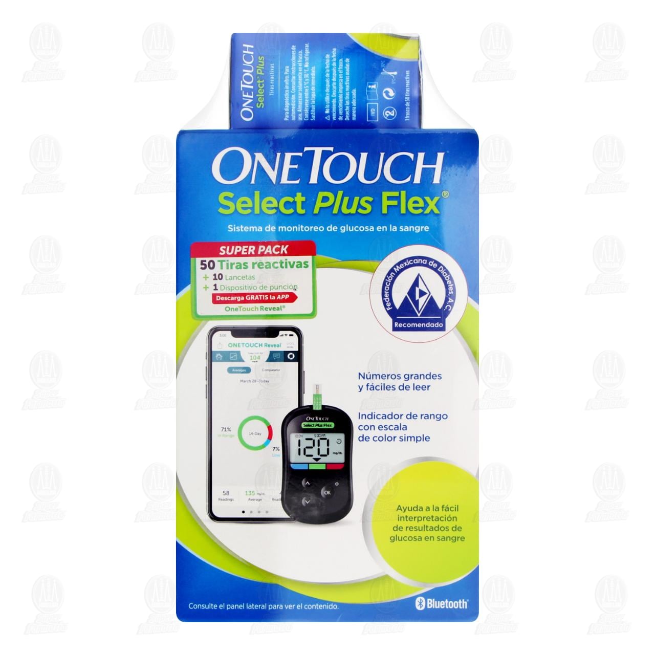 Pack One Touch Select Plus Flex Sistema de Monitoreo de Glucosa + Dispositivo de Punción + Tiras Reactivas, 3 pzas.