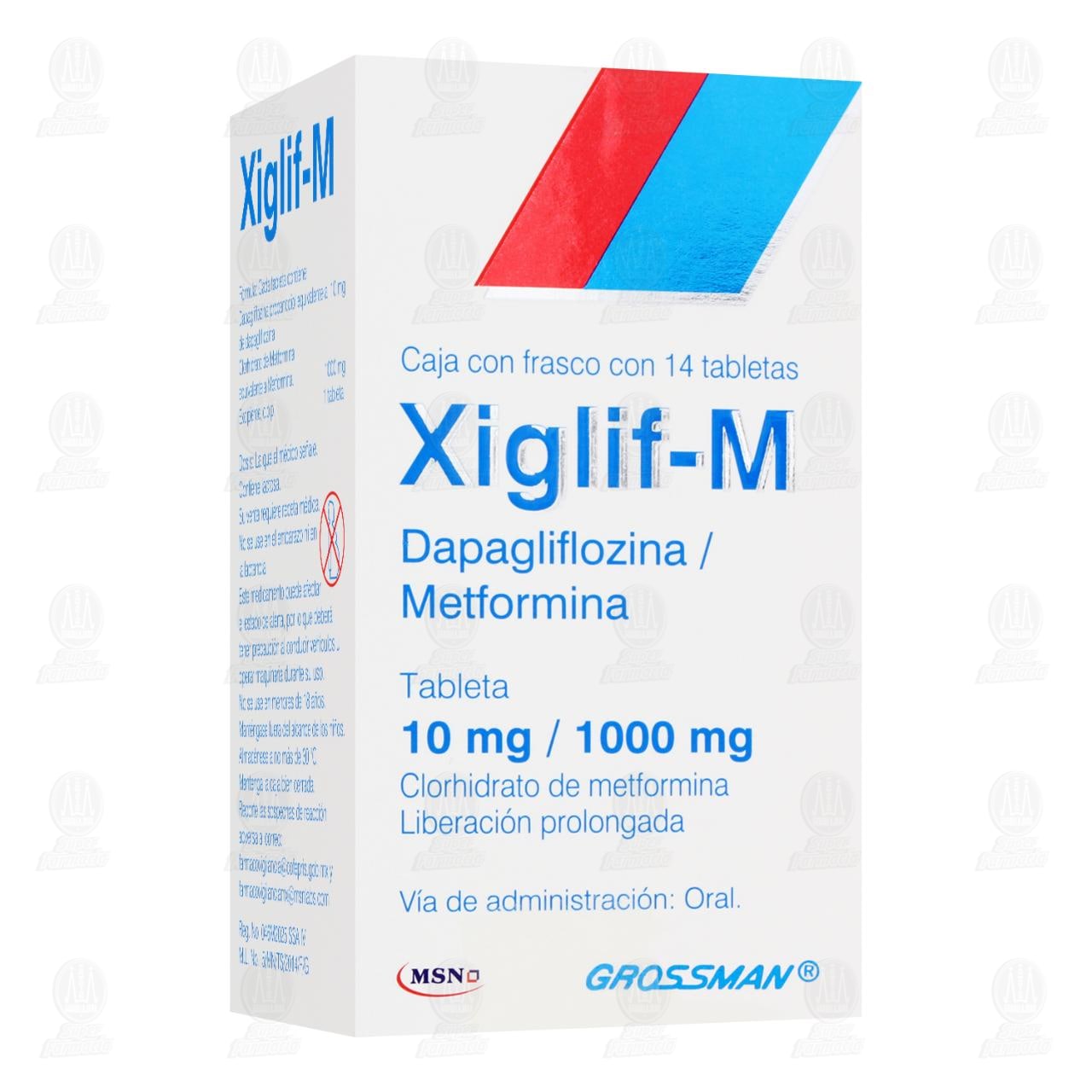 Xiglif-M 10mg/1000mg, 14 Tabletas (Dapagliflozina, Metformina)