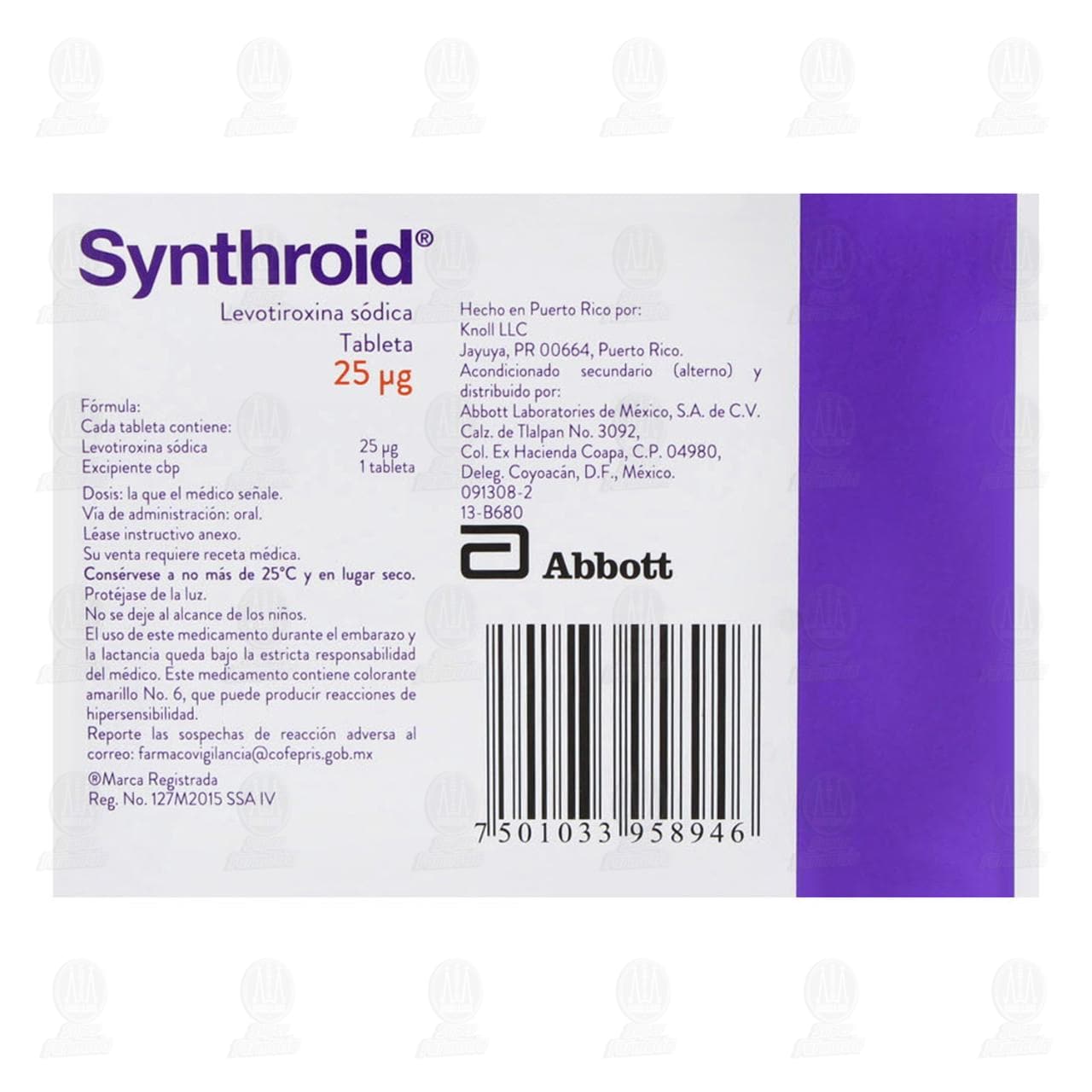 Synthroid 25 microgramos, 30 Tabletas (Levotiroxina sódica)
