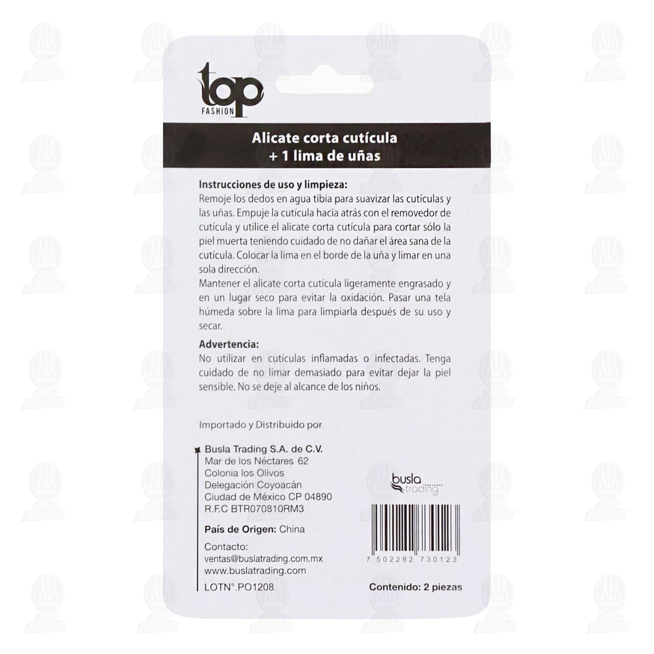 Alicate Top Fashion Corta Cutícula con Lima de Uñas, 2 pzas.