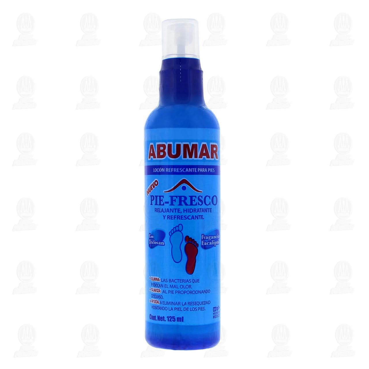 Loción refrescante Abumar Pie-Fresco, relajante e hidratante para pies, con triclosán y fragancia a eucalipto. Envase con 125 mililitros.