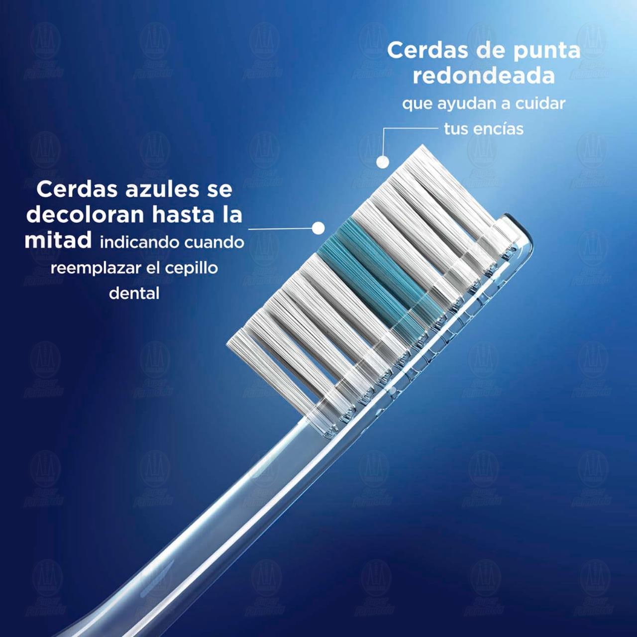 Con cerdas indicator; que son cerdas azules que se decoloran hasta la mitad para señalarte que es tiempo de remplazar tu cepillo dental. Además, sus cerdas de punta redondeada te ayudan a cuidar tus encías gracias a su suavidad de cerdas.