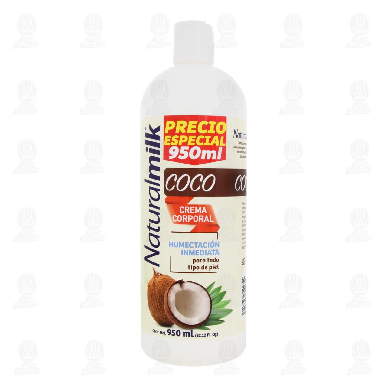 Crema corporal líquida Naturalmilk Coco, absorción rápida y sensación ligera, extra humectante con una deliciosa fragancia. Envase con 950 mililitros.