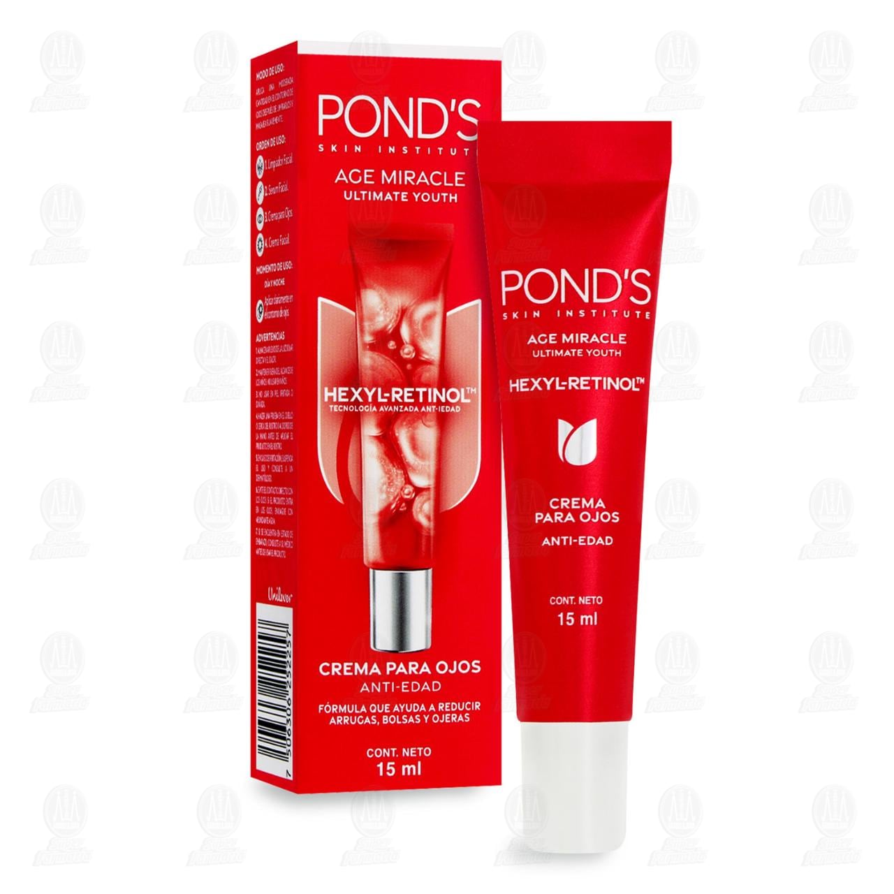 Crema para Ojos Pond's Age Miracle Hexyl-Retinol Anti-Edad. Contiene 15 mililitros.