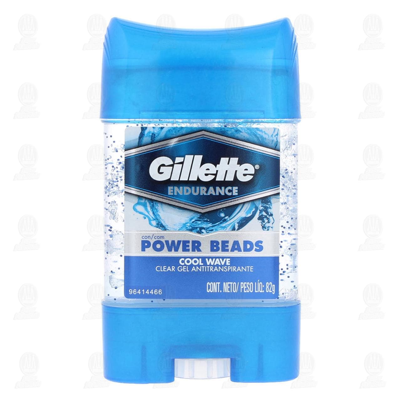 Antitranspirante Gillette Endurance Cool Wave en gel con power beads. Envase con 82 gramos.