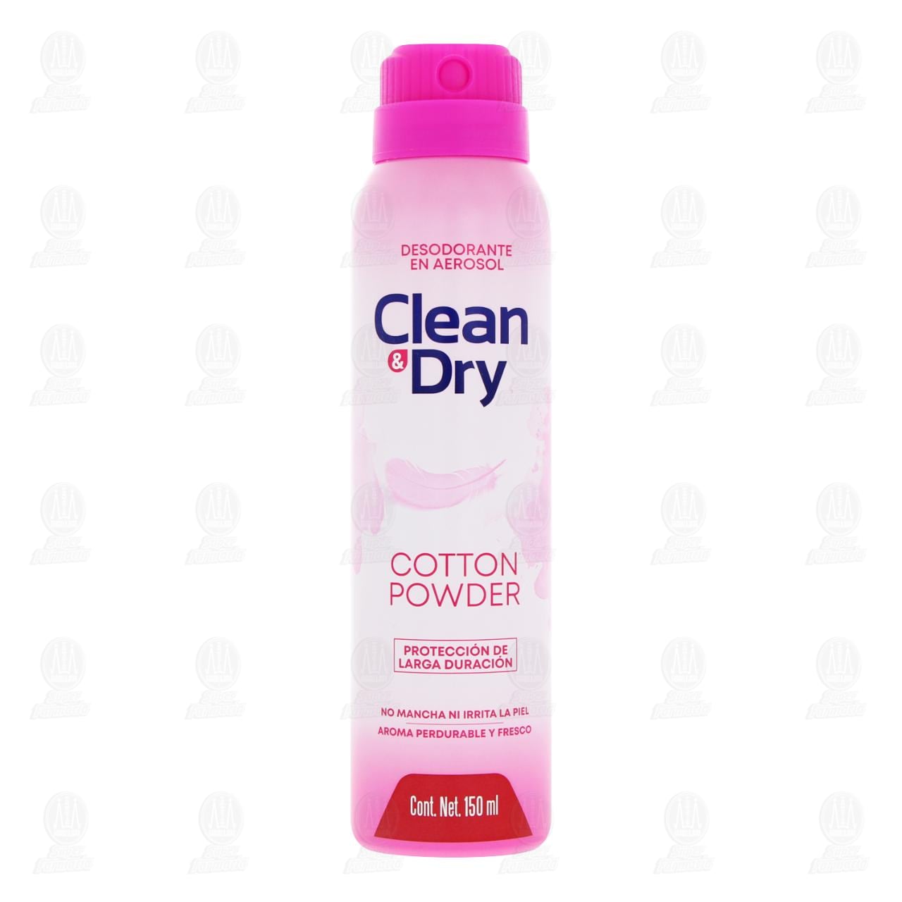 Desodorante Clean & Dry Cotton Powder en Aerosol, 150 ml.