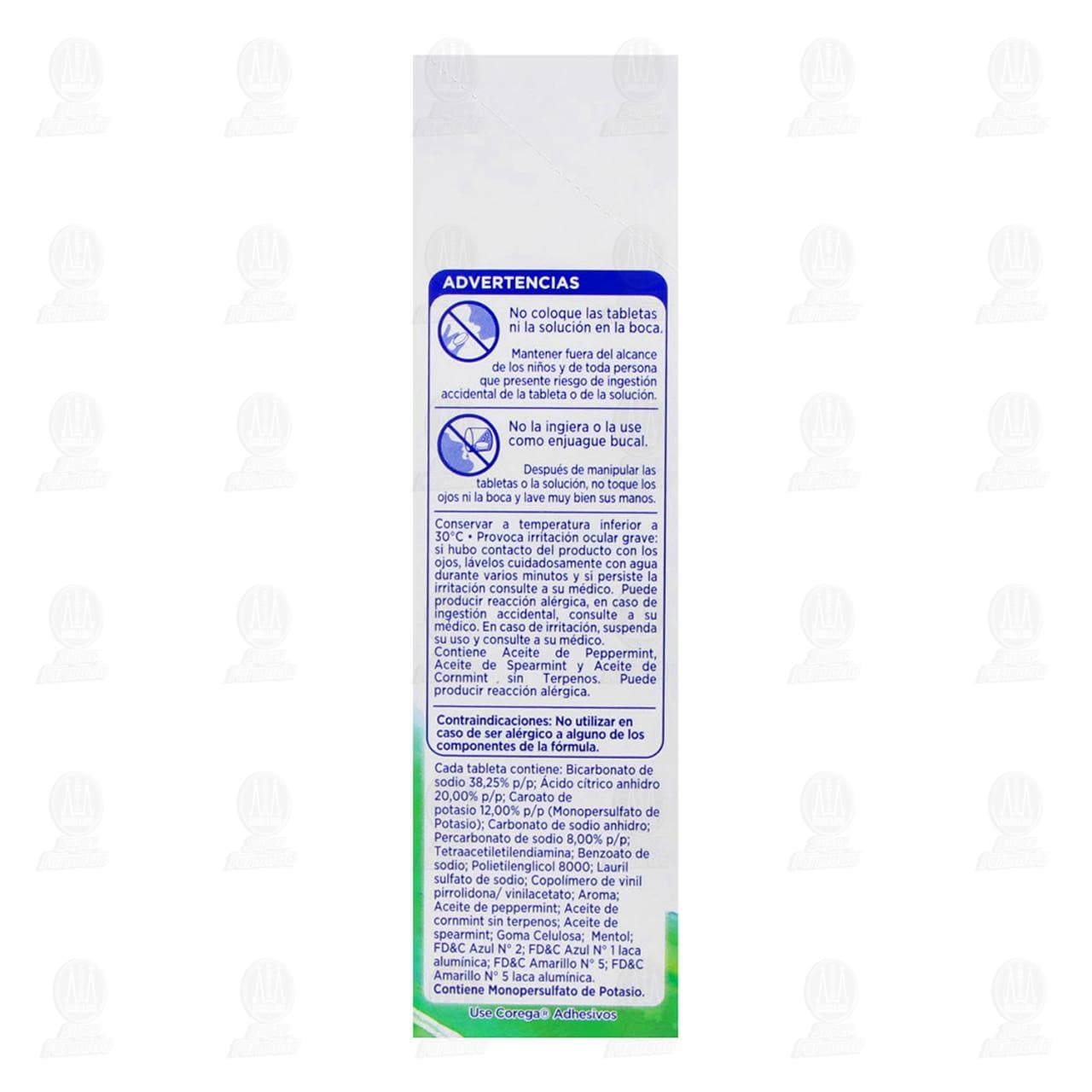 Limpiador de prótesis dentales y aparatos removibles como aparatos de ortodoncia, placas de descanso y protectores bucales. Elimina el 99.9% de las bacterias que causan el mal olor*. Con triple frescura de menta.