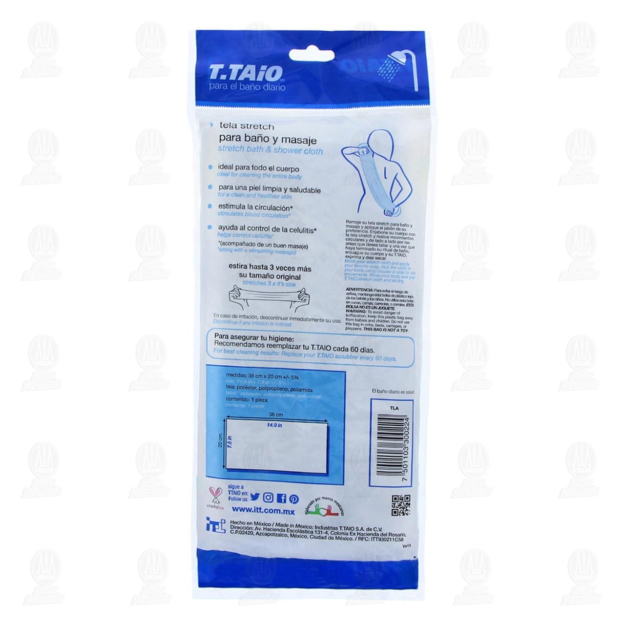 Tela stretch T.Taio para baño y masaje, se puede usar para todo tipo de piel y se puede utilizar para todo el cuerpo, brindando una limpieza profunda. Contiene 1 pieza.