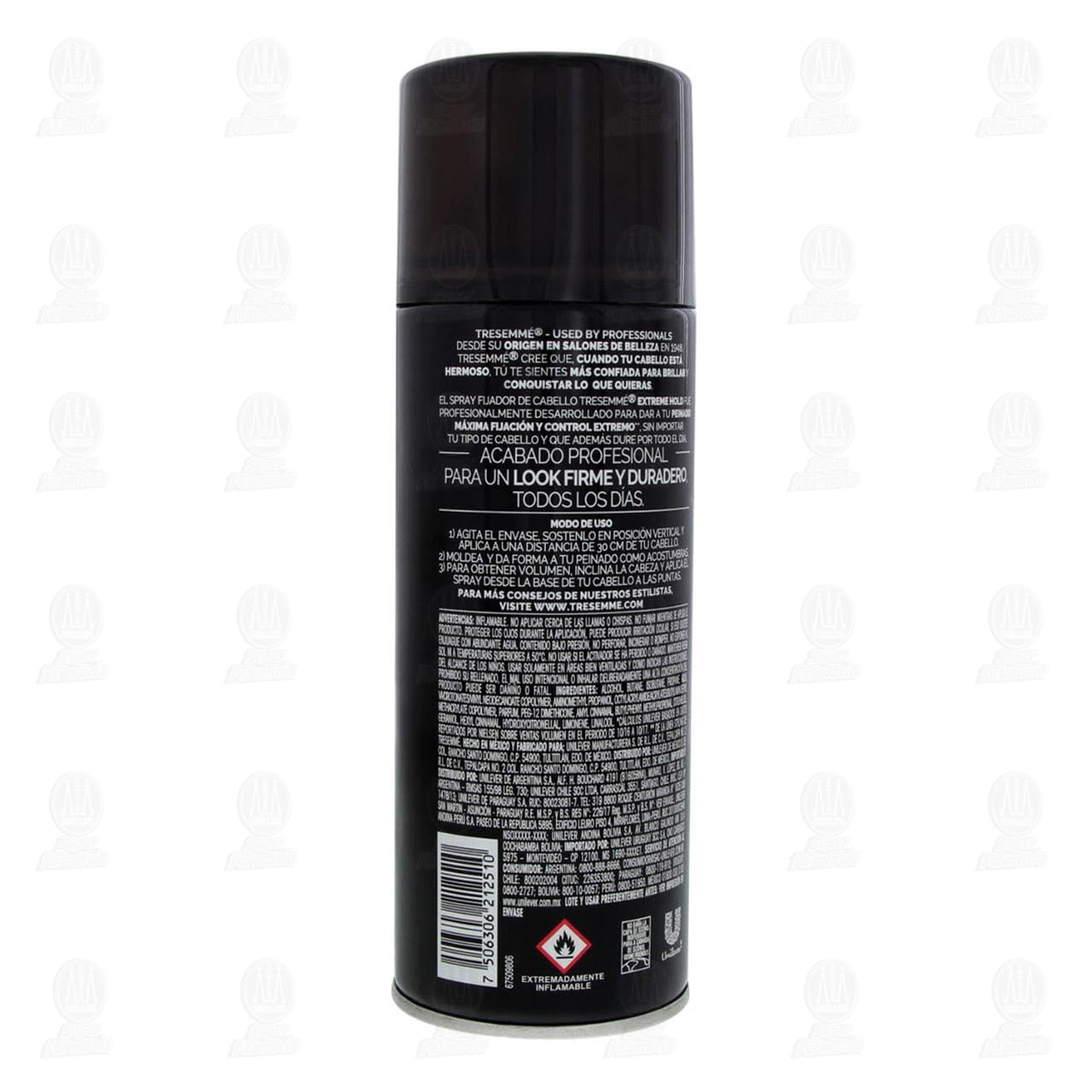 Fijador en spray Tresemmé Extreme acabado profesional, máxima fijación y control extremo para todo tipo de cabello. Envase con 300 mililitros.