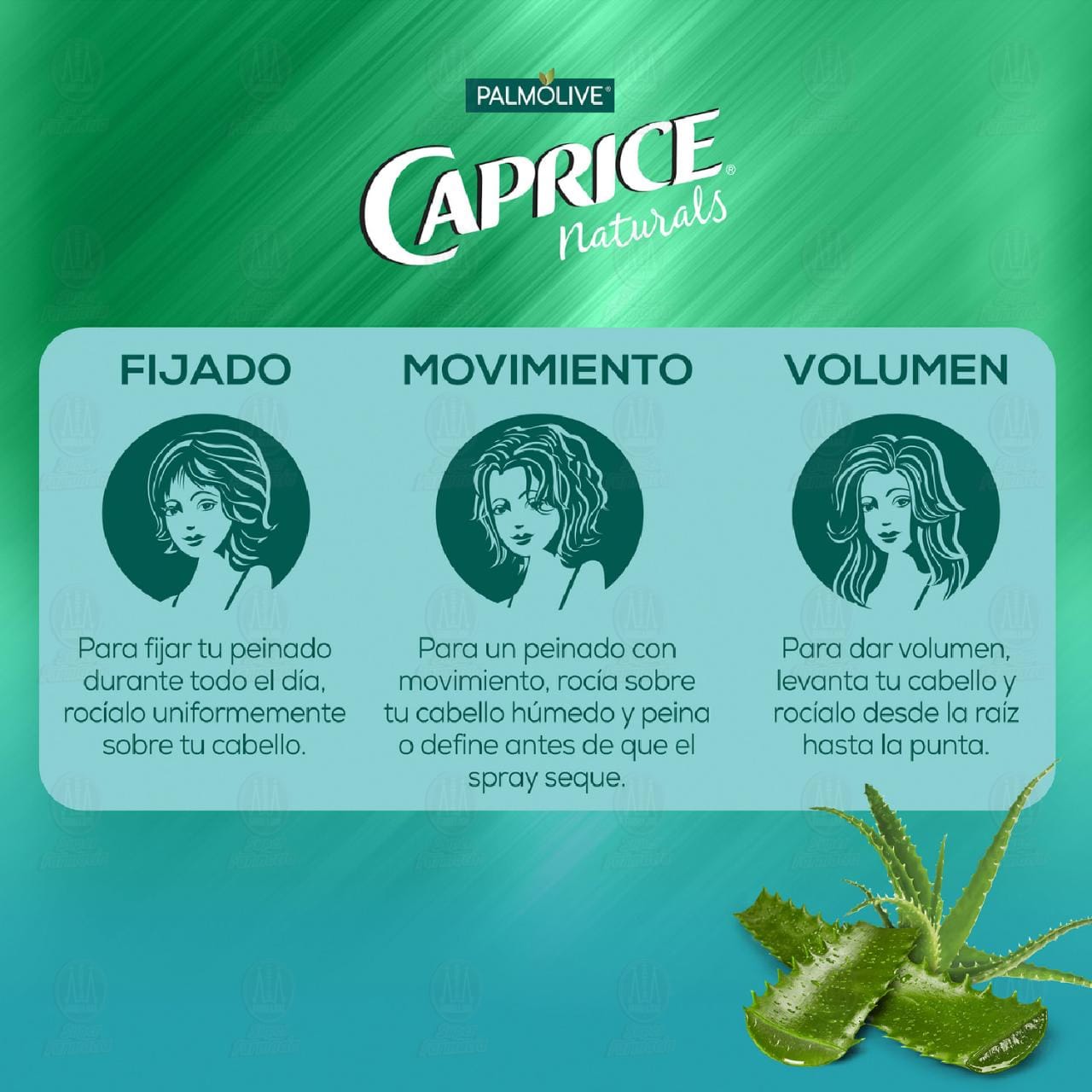 Luce un cabello brillante y un peinado espectacular con el Spray para Cabello Caprice Naturals, Su fórmula con Extracto de Sábila le da a tu cabello brillo, aroma y movimiento mientras lo protege de la contaminación. Contiene 316 mililitros.