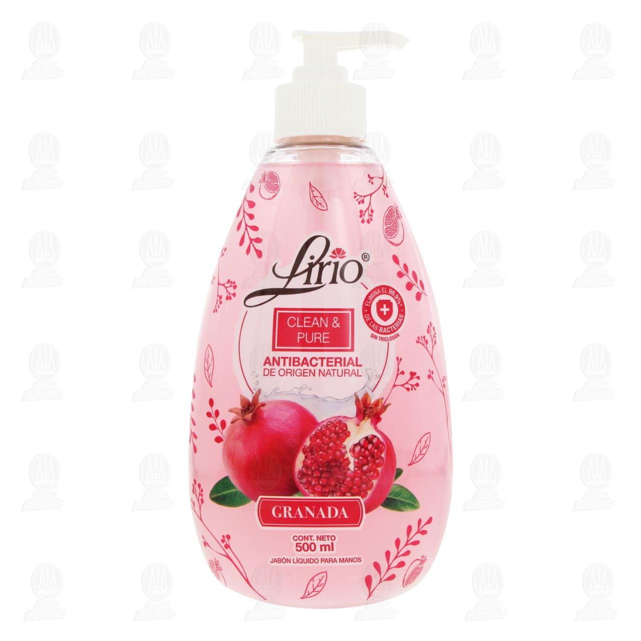 Jabón Líquido Lirio Clean & Pure Antibacterial de origen natural para manos, Granada. Botella de 500 mililitros.