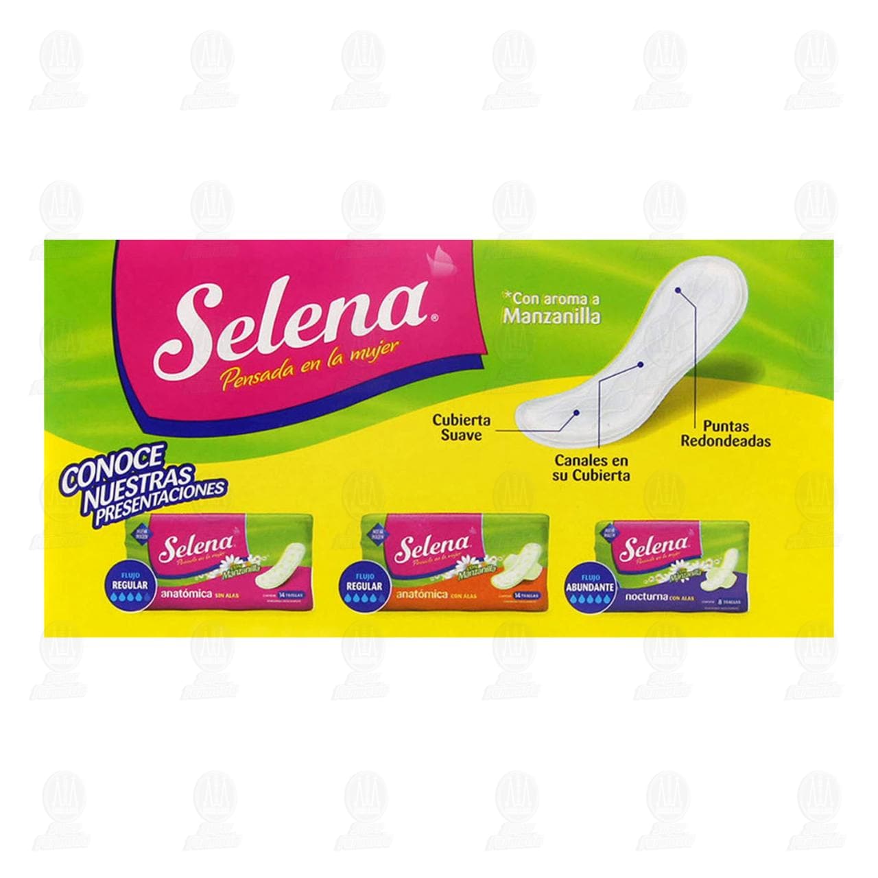 El Pantiprotector Selena ayuda a contener escurrimientos gracias a su canal circuito, además contiene suaves cubiertas tipo tela. Cuenta con manzanilla para el control de olor.