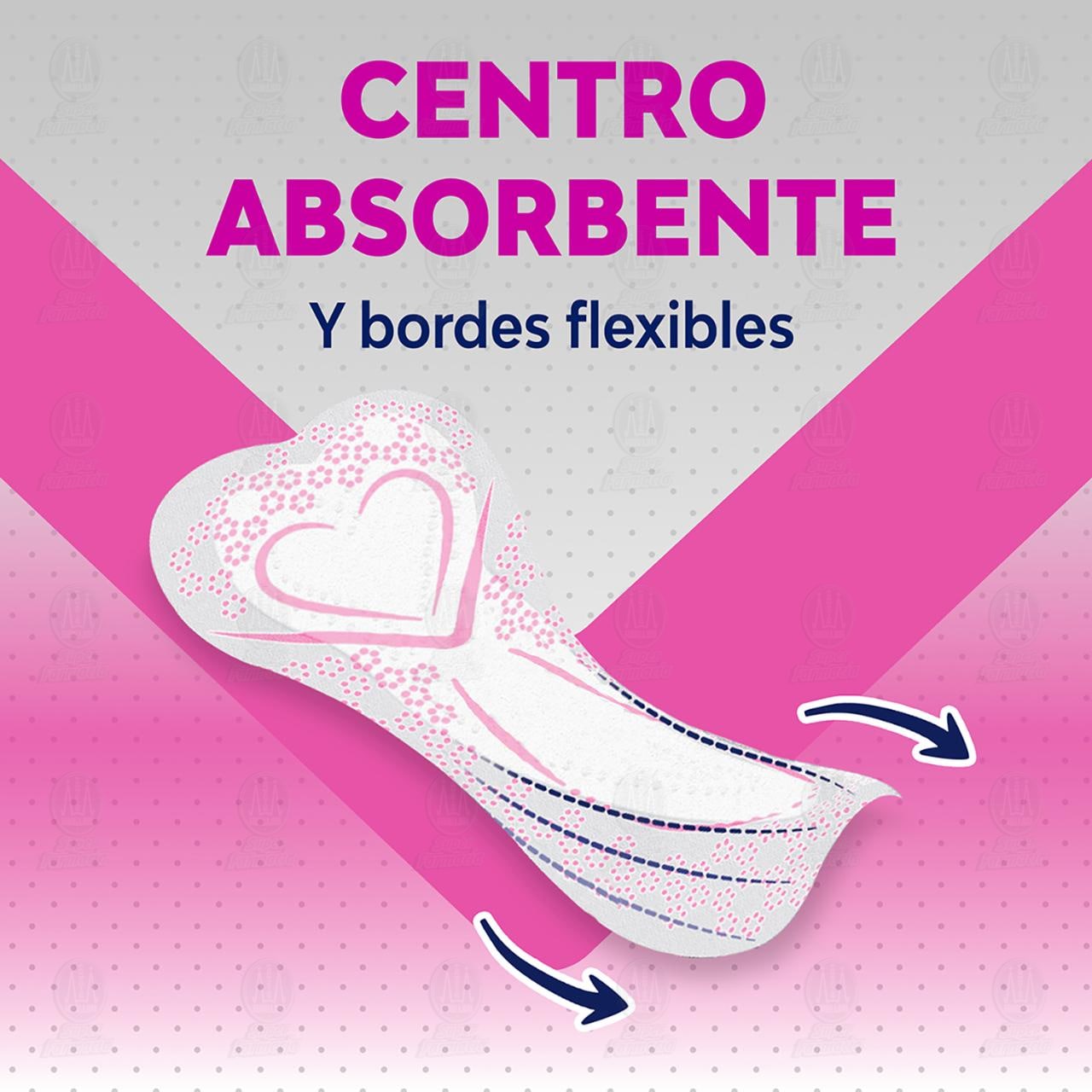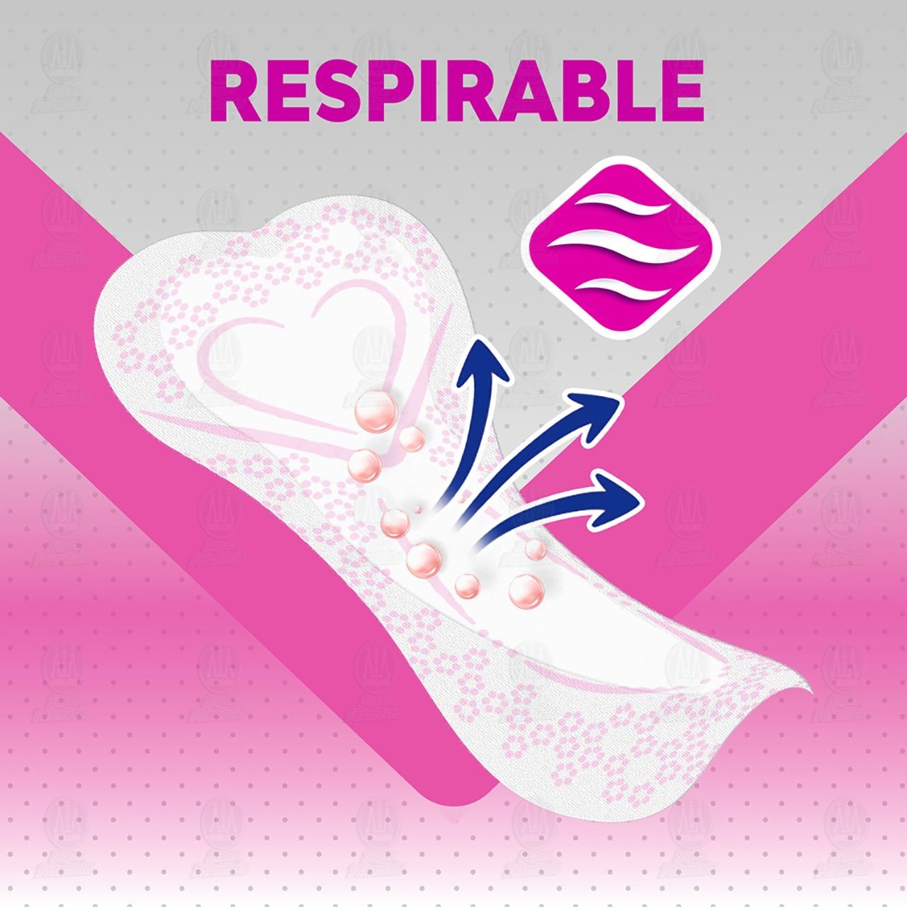 Gracias a su centro absorbente y bordes flexibles que se ajustan perfecto a cualquier tipo de ropa interior y porque sabemos que la piel de la Zona V es muy delicada, tiene aloe vera para humectarla y cubierta suave para evitar que se irrite.