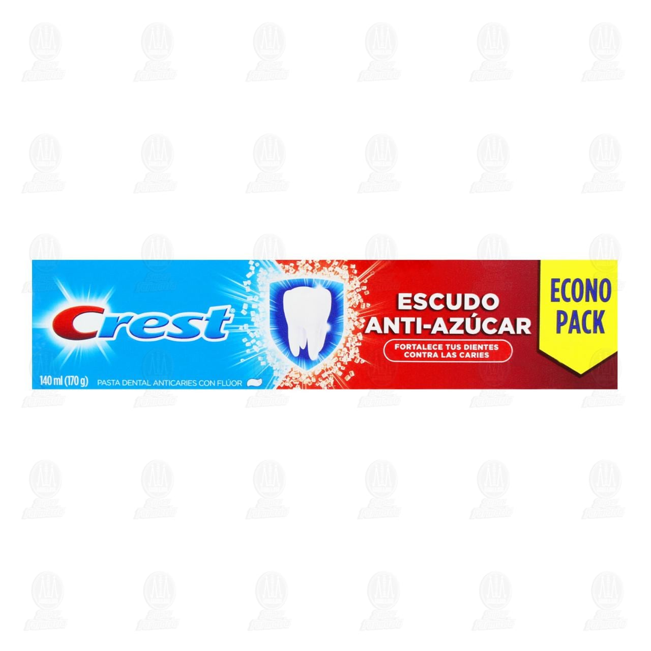 Conoce la nueva pasta dental Crest con un Escudo Antiazúcar que sirve como defensa activa contra las caries. Además de cuidarte contra las caries, también contiene calcio y flúor. Contiene 140 mililitros.