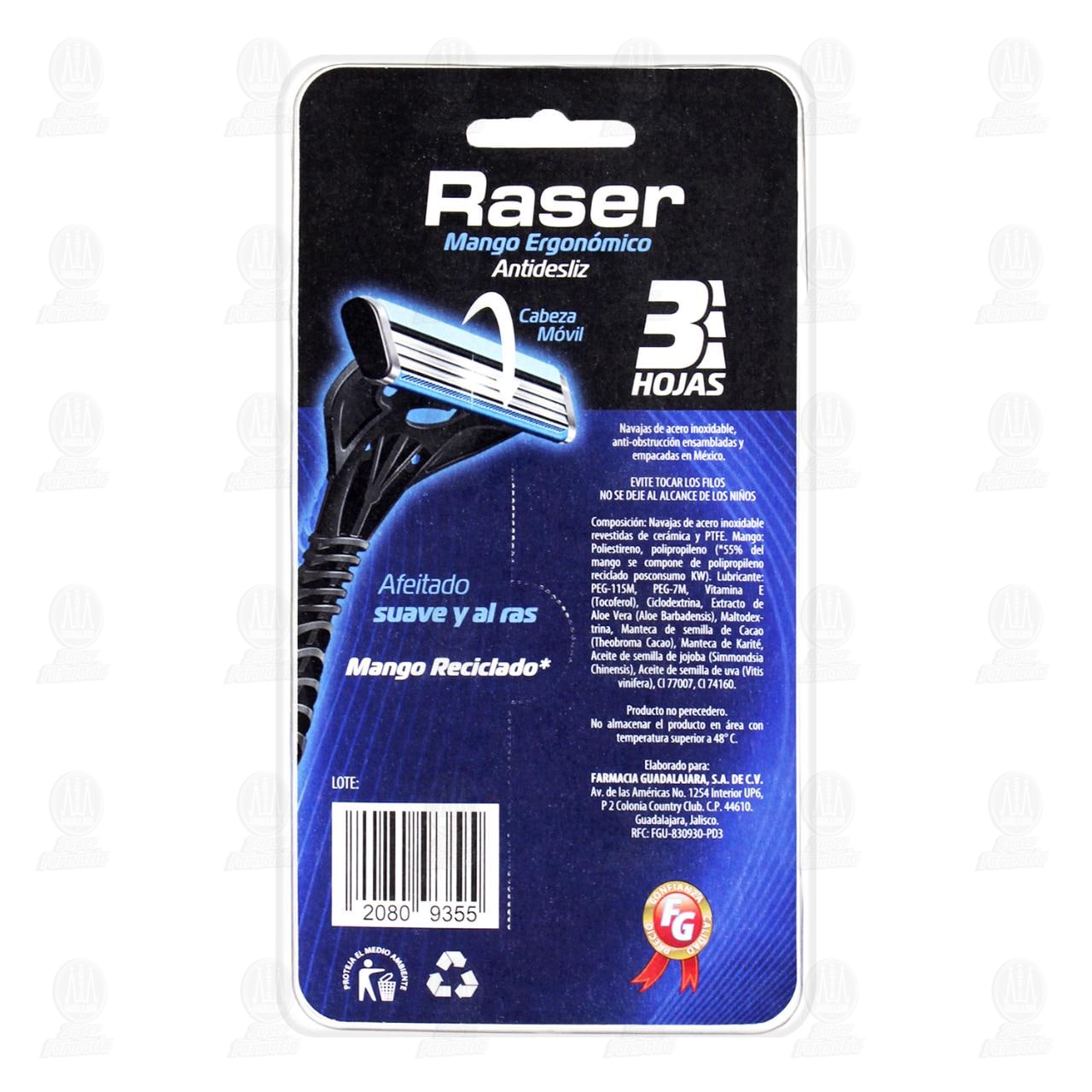 Rastrillos Raser Desechables de 3 hojas, Mango ergonómico antidesliz y banda lubricante. Contiene 2 piezas.