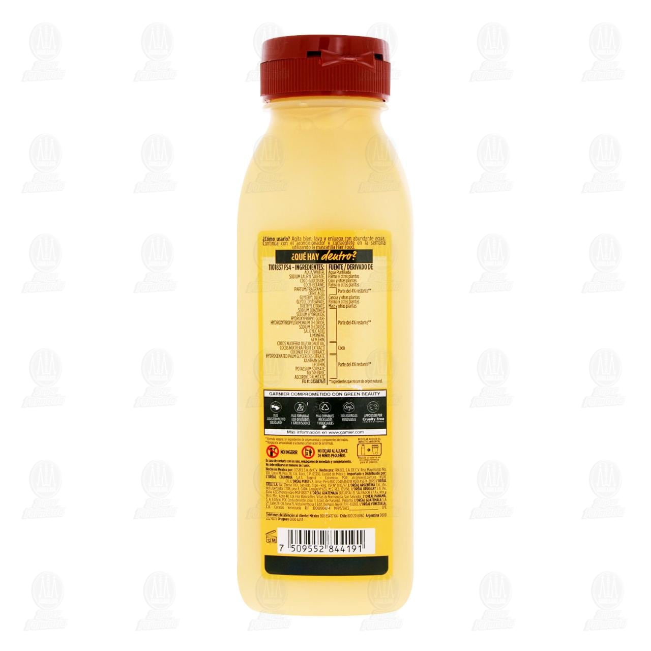 Shampoo Garnier Fructis Hair Food Coco Reparación, fórmula vegana con 98% ingredientes de origen natural para cabello dañado. Envase con 300 mililitros.